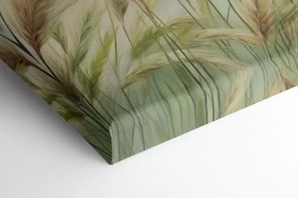 Glezna Kviešu lauks ar dzelteniem un zaļiem graudu graudiem, maigi triepieni un viegla krāsu palete, dabiska atmosfēra Nr s44923
