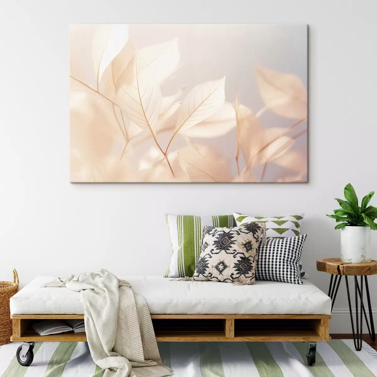 Glezna Caurspīdīgas lapas ar sarežģītiem dzīslu rakstiem, maiga pasteļkrāsu palete, ēterisks apgaismojums, minimālisma kompozīcija s44928