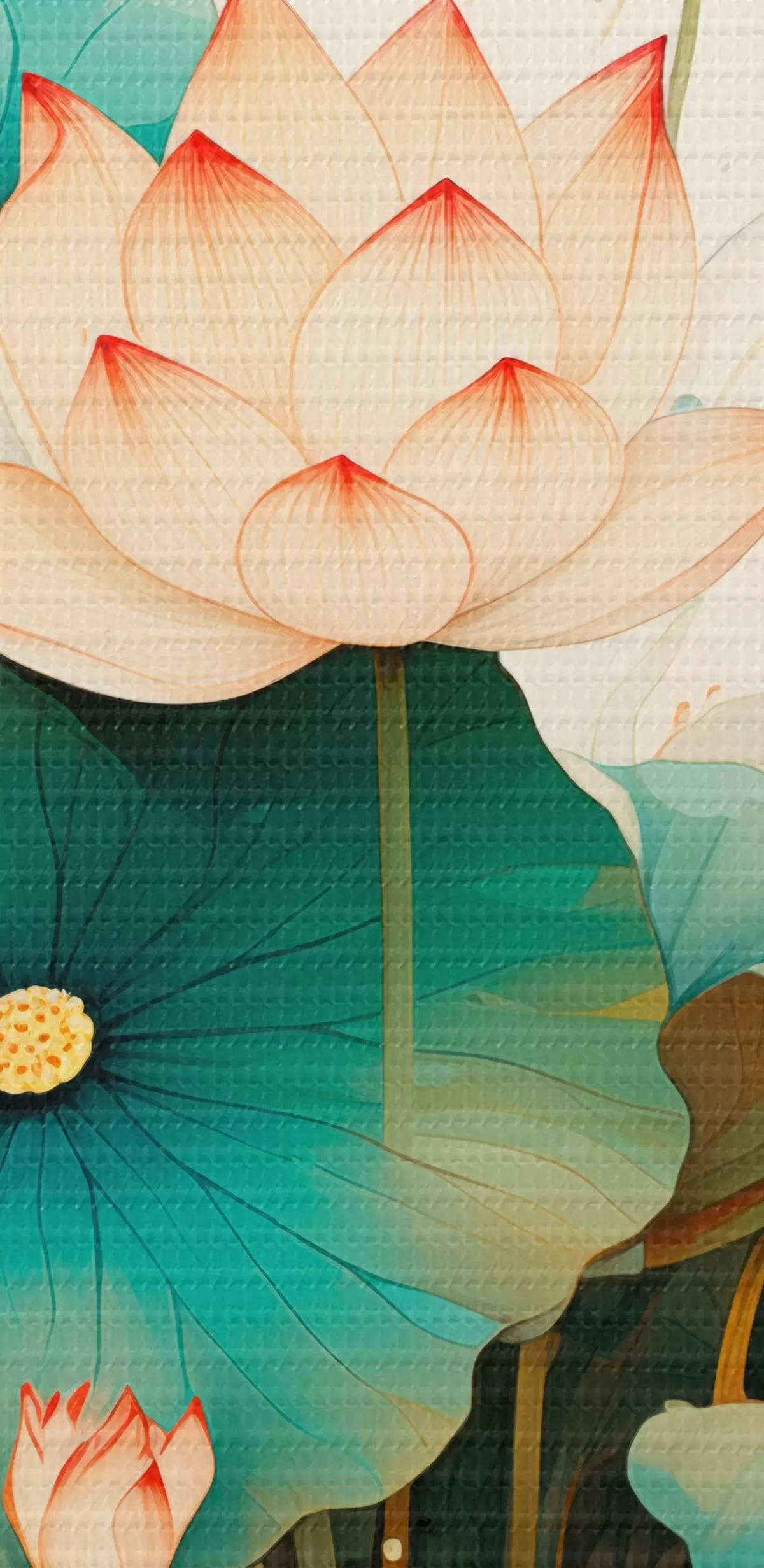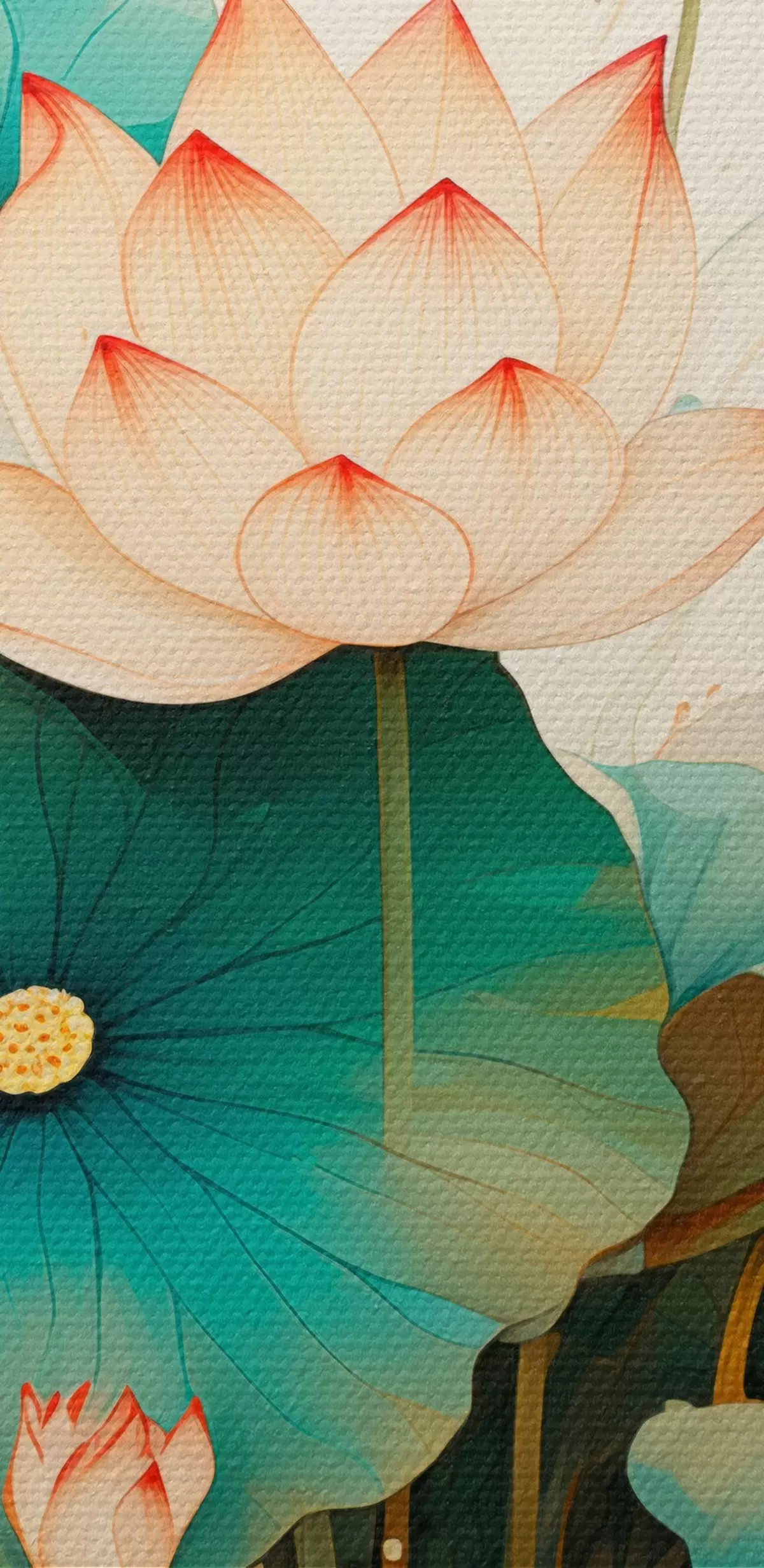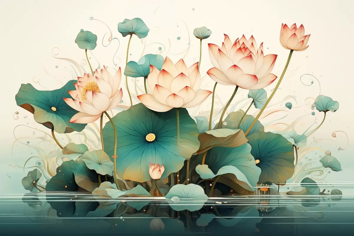 Glezna Lotusi ar lielām lapām ilustrāciju stilā Nr s44939