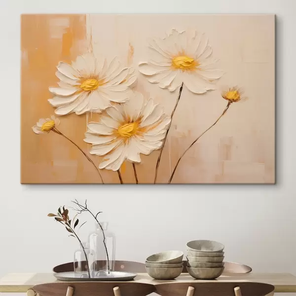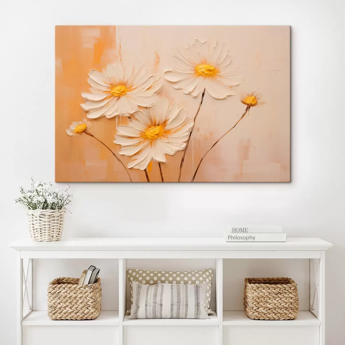 Glezna Abstraktie ziedi uz oranža fona eļļas gleznošanas stilā s44945