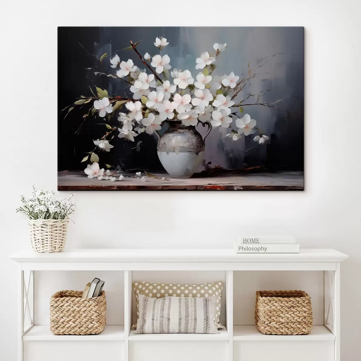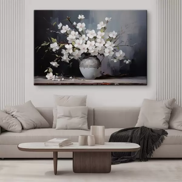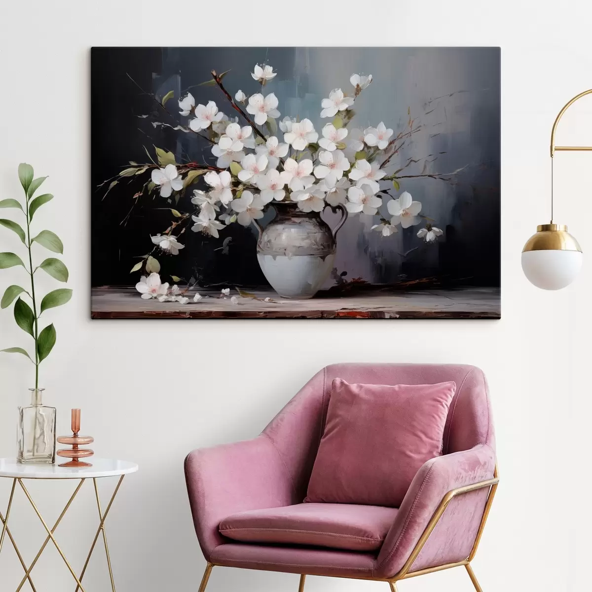 Glezna Ziedoši zari vāzē uz tumša fona gleznainā stilā Nr s44949