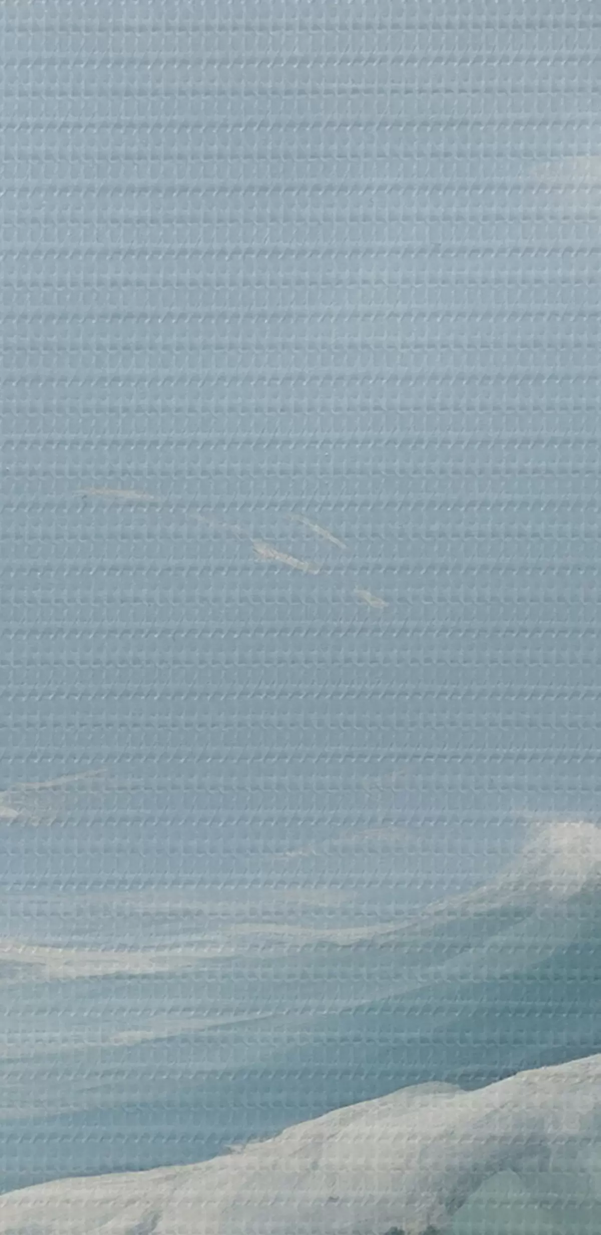 Smalkais diegu pinums uz šī audekla atgādina profesionālu mākslinieku audeklu virsmu.