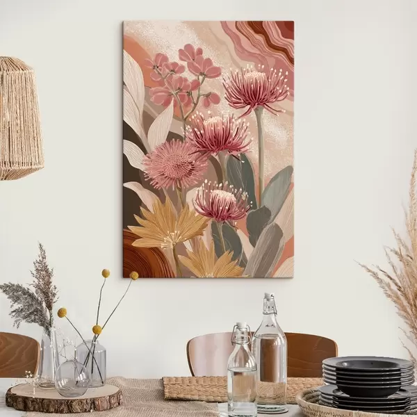 Glezna Skaisti ziedi, eļļas stila zīmējums, sarkanas un rozā krāsas s44975