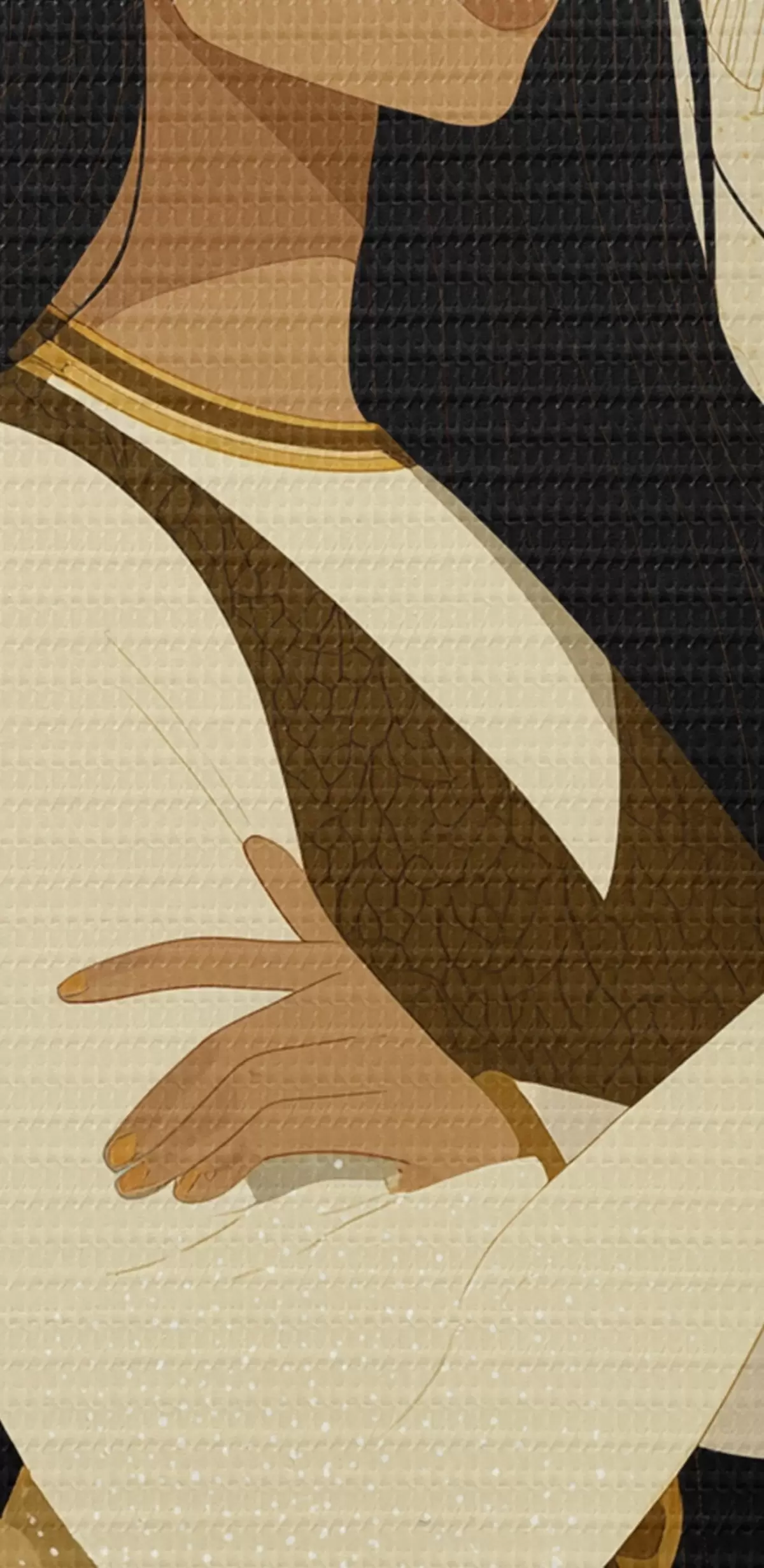 Lai izstieptu audeklu uz nestuvēm, nebojājot attēlu, mēs izmantojam spoguļattēlu.
