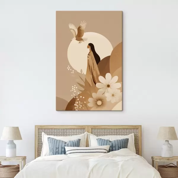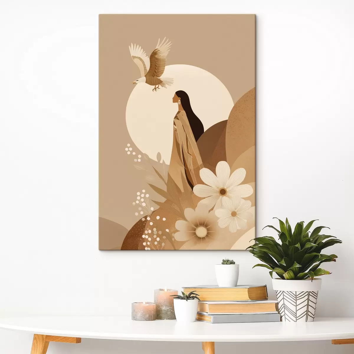 Glezna Abstrakcija ar sievieti un ērgli debesīs, bēšas krāsas s44978