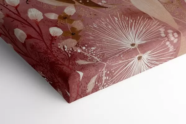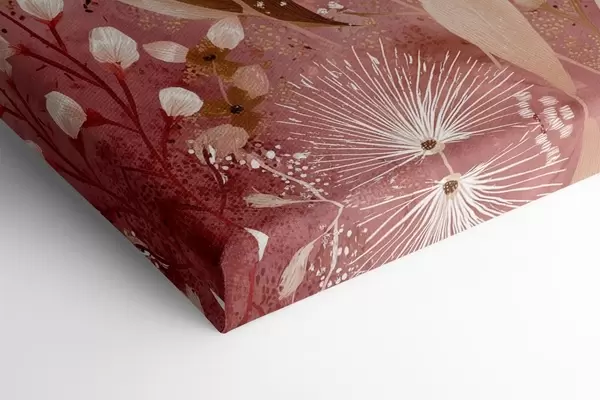 Glezna Boho stila balti ziedi uz sarkana fona, detalizēts zīmējums s44979