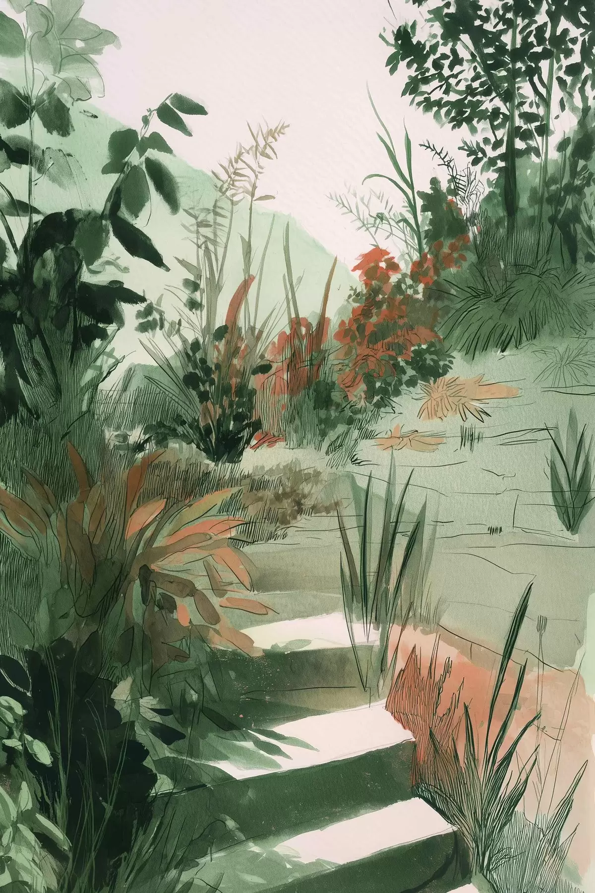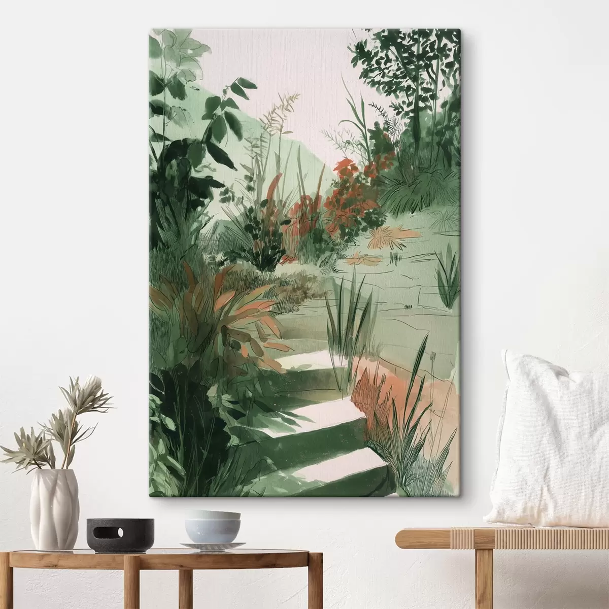 Glezna Austrumu dārzs ar krūmiem un kokiem, zaļas krāsas Nr s44982