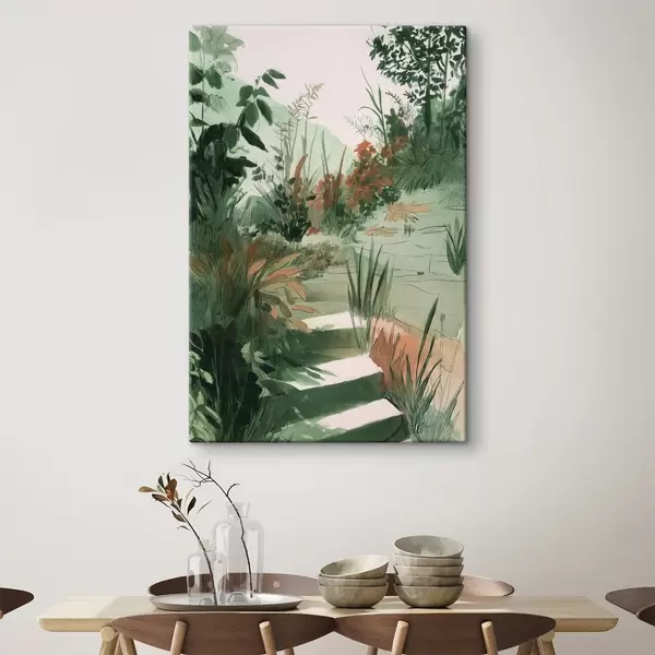 Glezna Austrumu dārzs ar krūmiem un kokiem, zaļas krāsas s44982