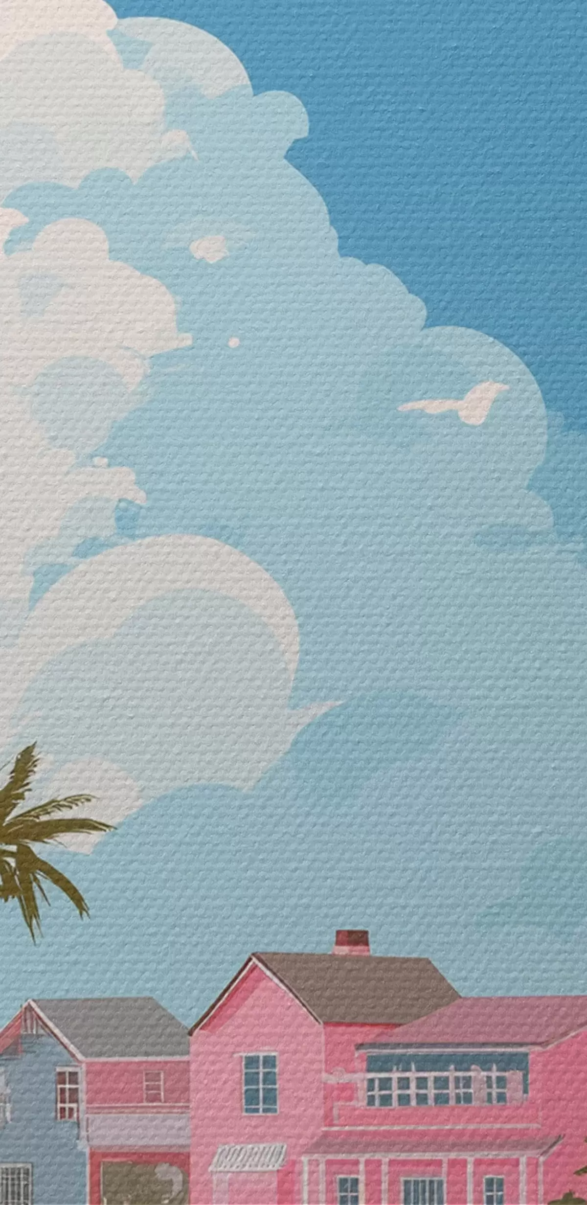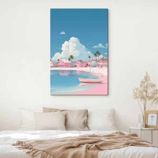 Glezna Krāsaina rozā vasaras pludmale  s44985