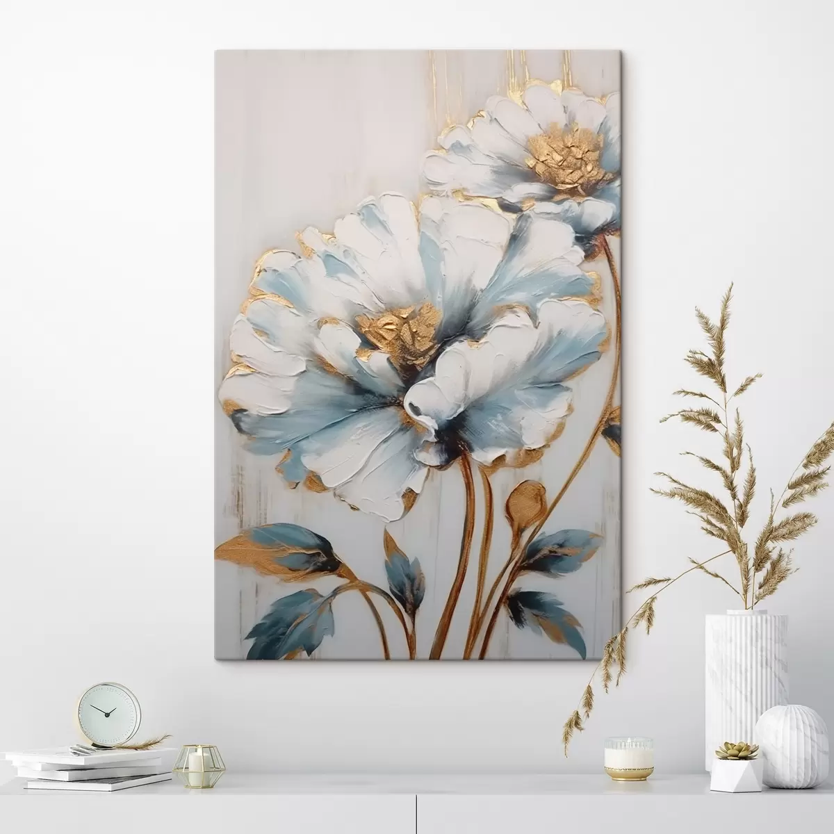 Glezna Zili un balti ziedi s44989