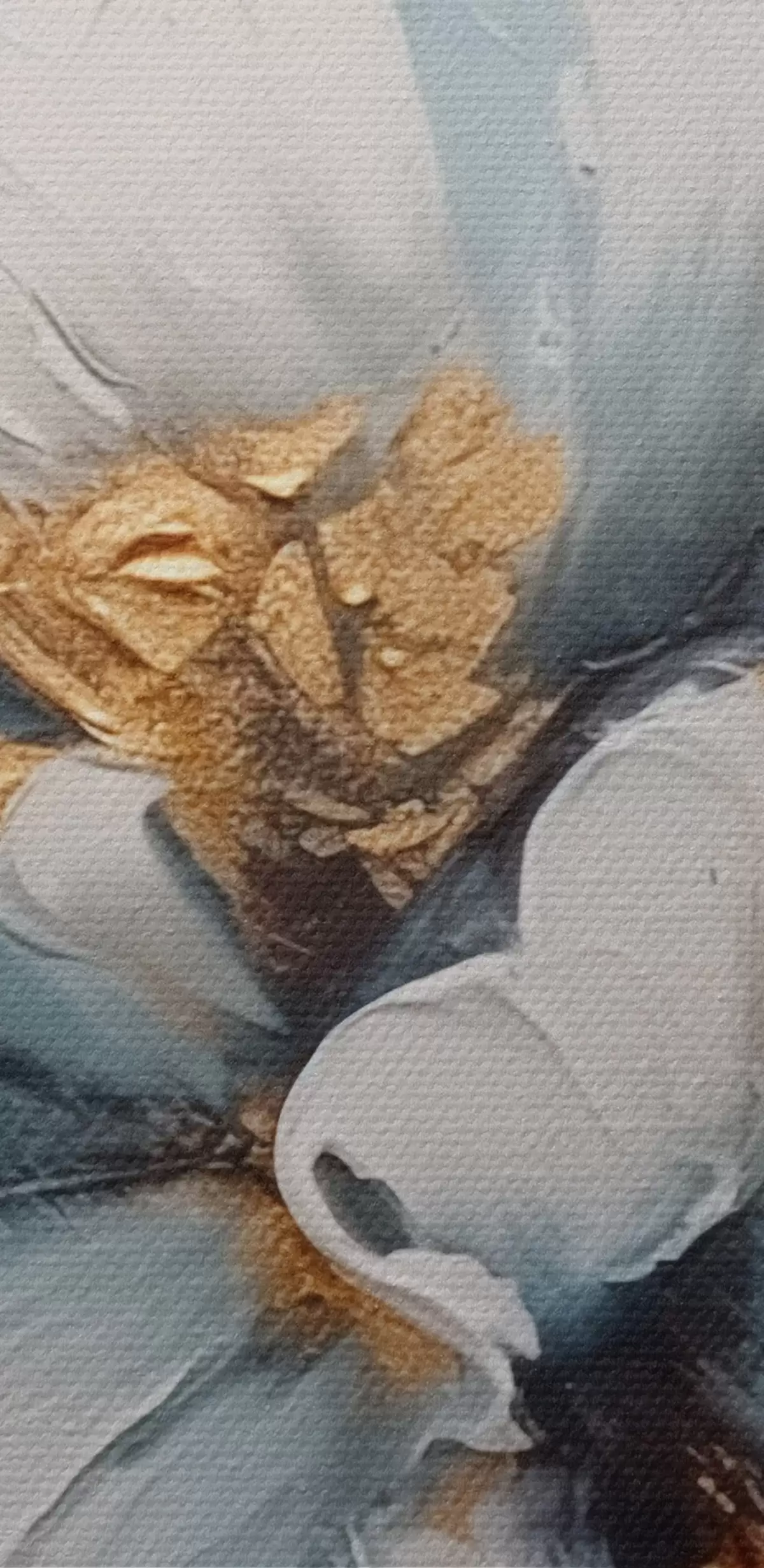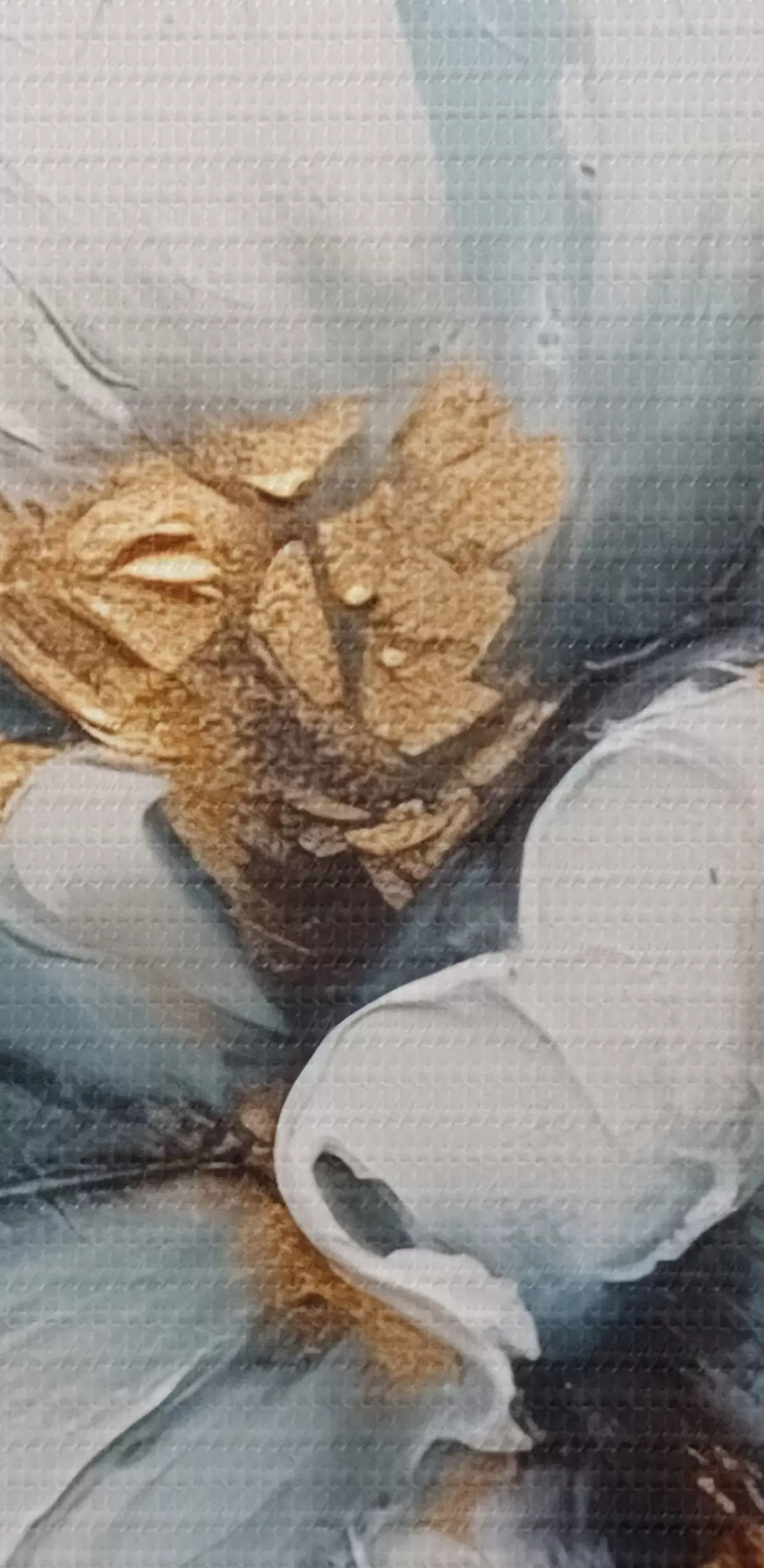 Smalkais diegu pinums uz šī audekla atgādina profesionālu mākslinieku audeklu virsmu.
