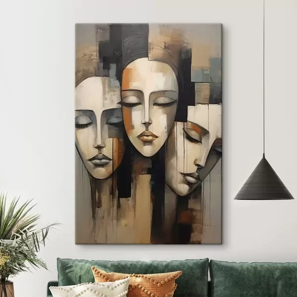 Glezna Trīs sieviešu sejas ar aizvērtām acīm kubisma stilā s45008
