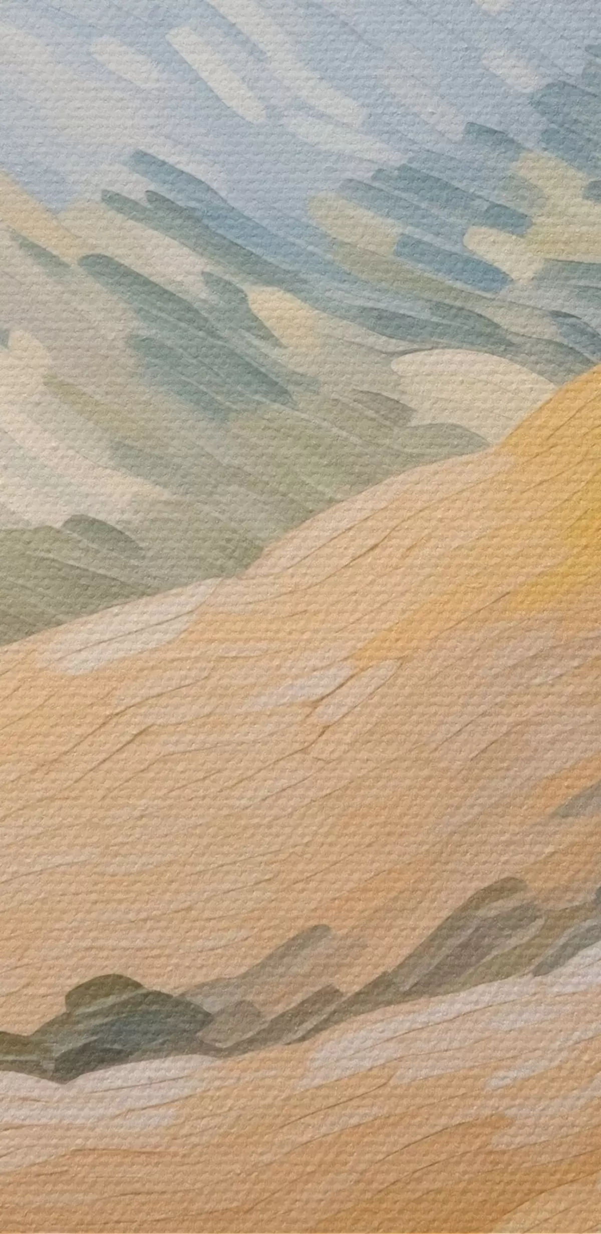 Glezna ir iekārtojama uzreiz pēc tās saņemšanas. Glezna tiks izstiepta uz 2 cm platām koka nestuvēm.