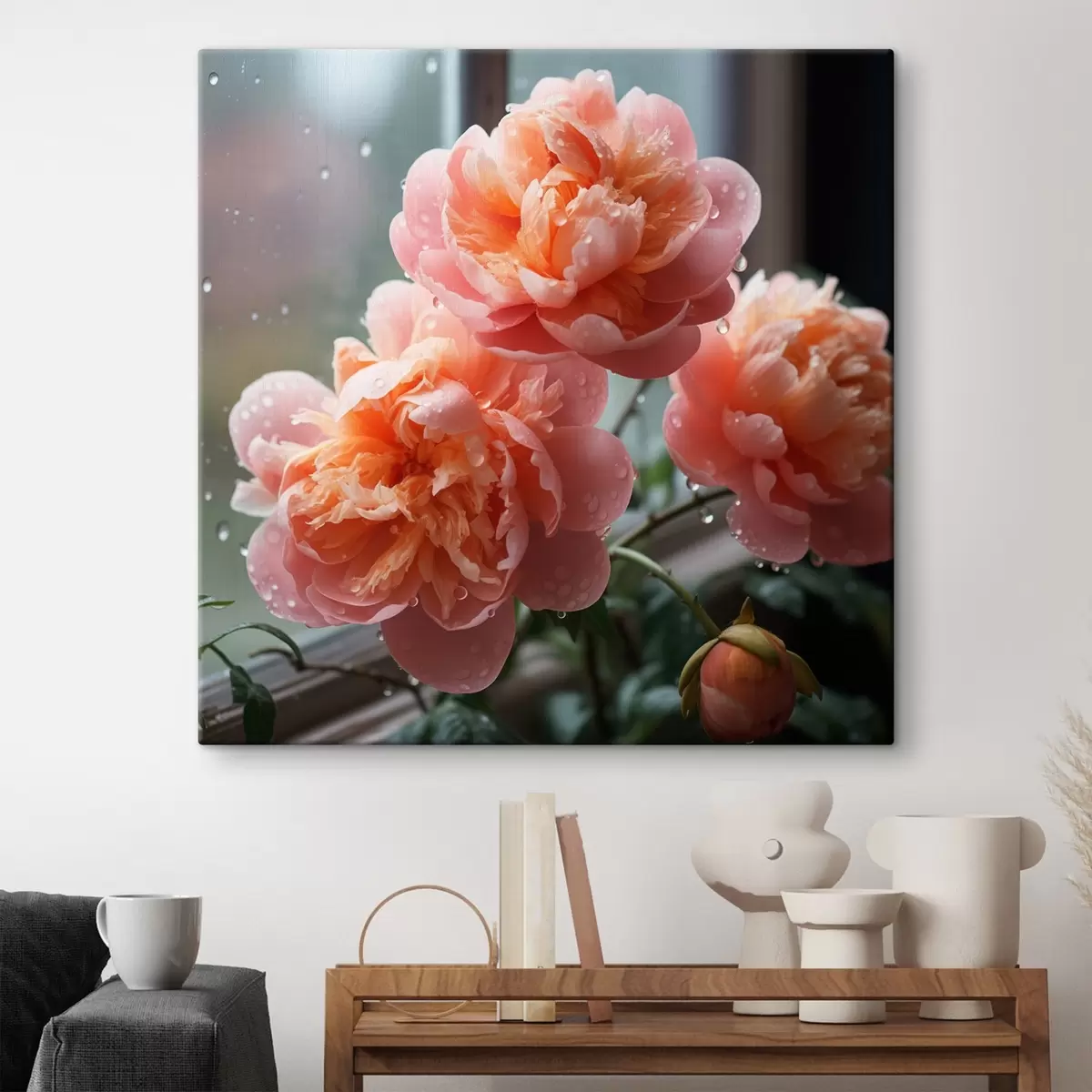 Glezna Trīs peonijas ar rasa rīta gaismā Nr s45033