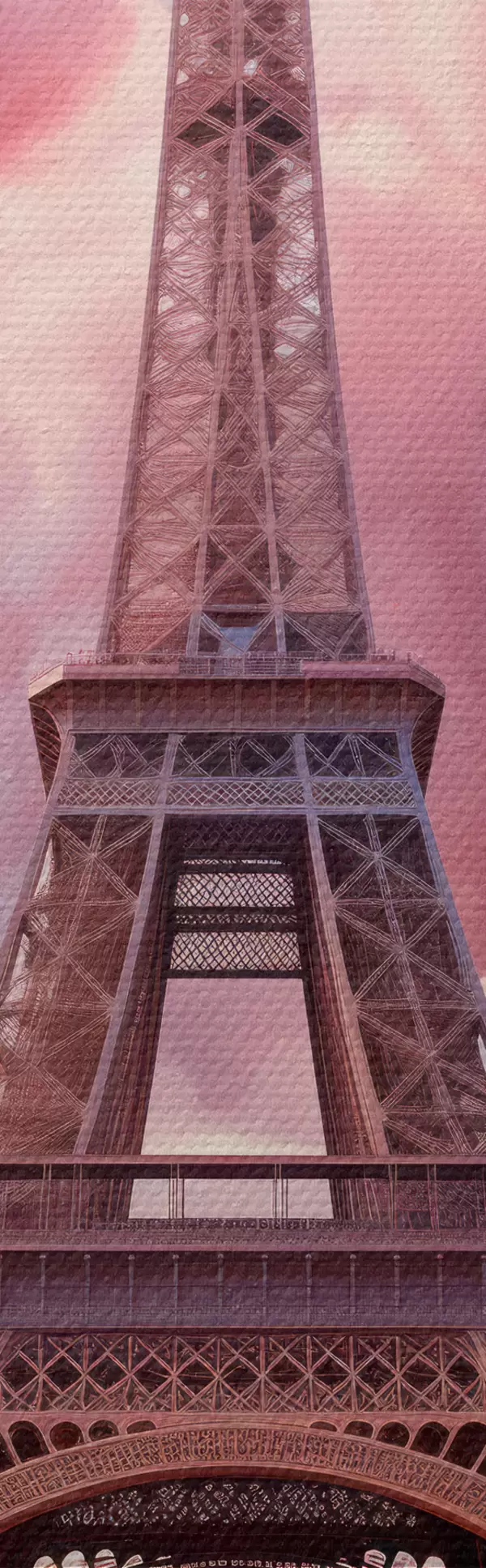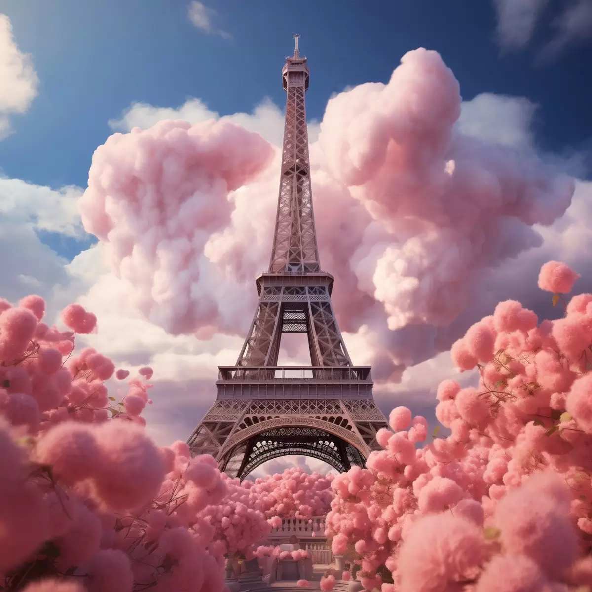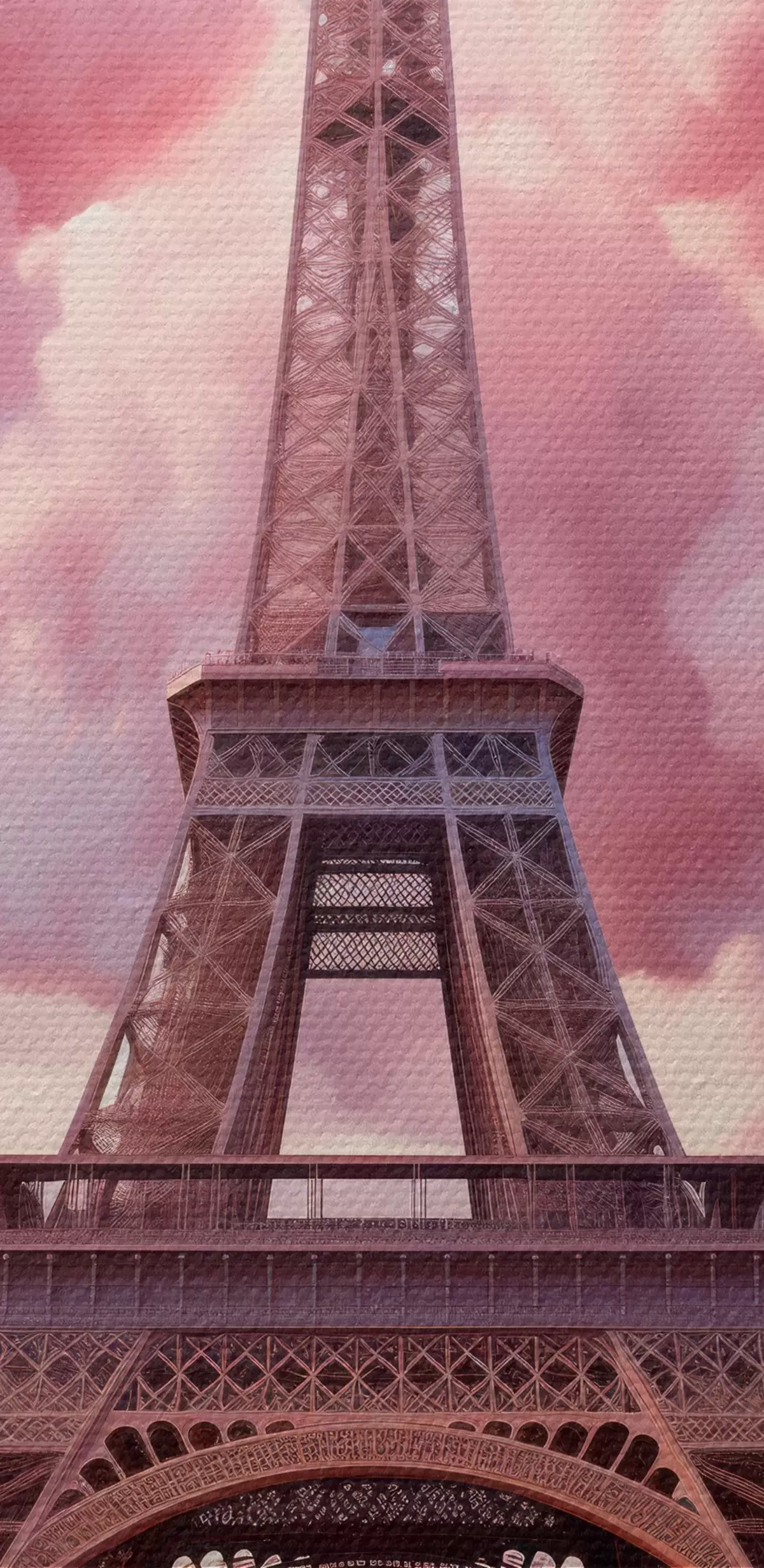 Glezna Eifeļa tornis rozā mākoņos fantāzijas stilā s45036