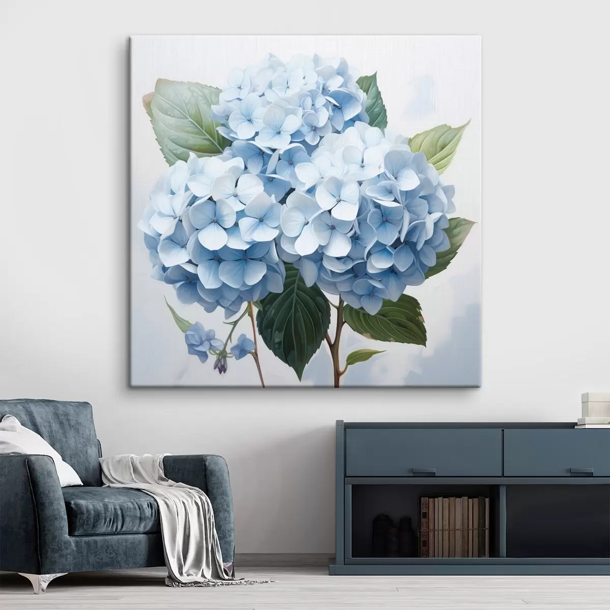 Glezna Zilas hortenzijas ziedu tuvplāns Nr s45044