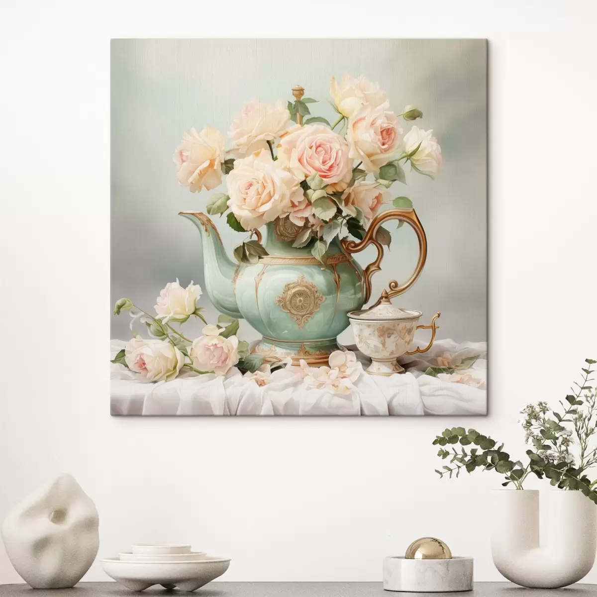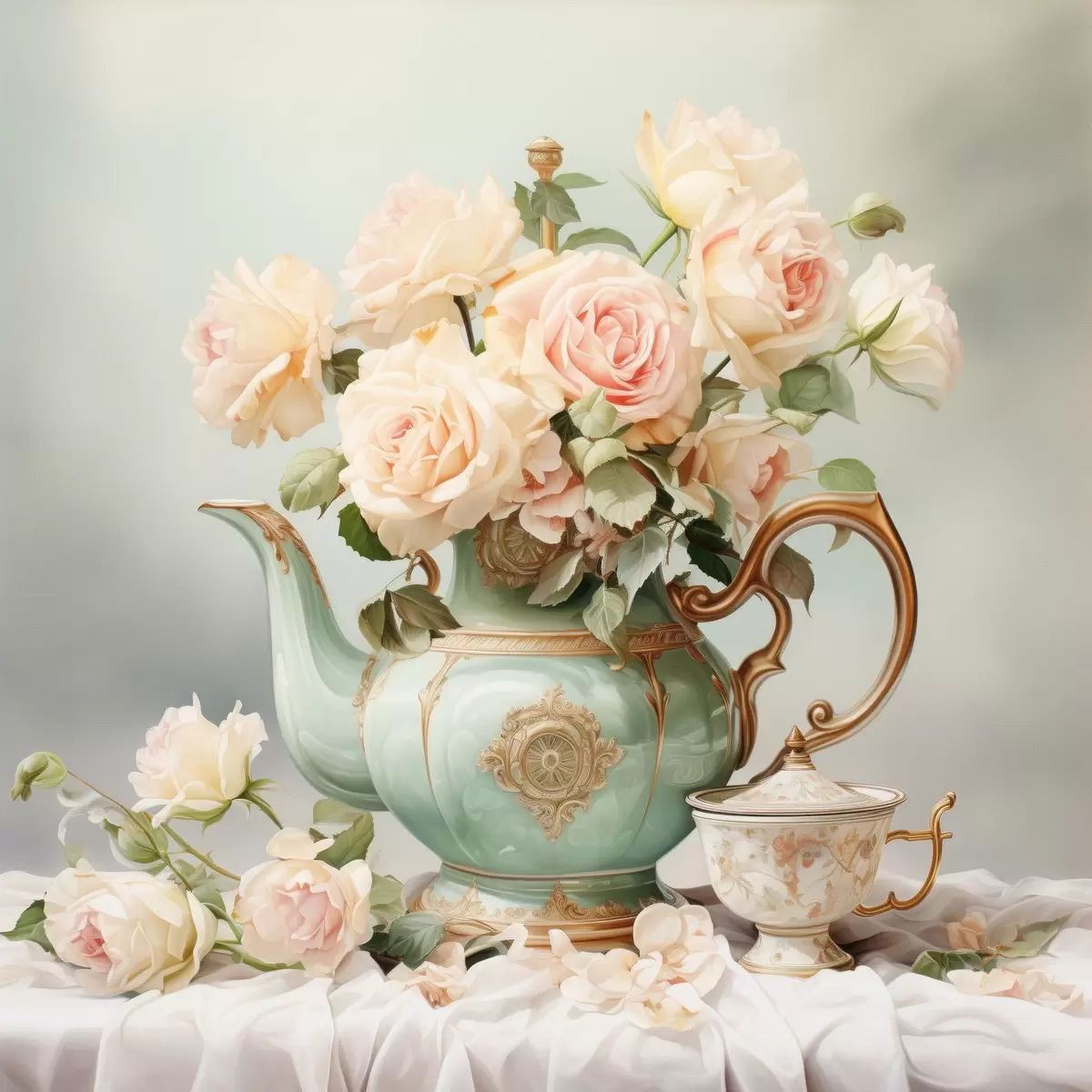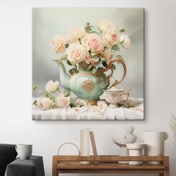 Glezna Klusā daba ar maigām rozēm tējas komplektā s45045