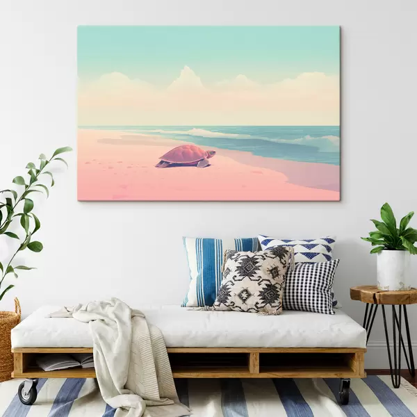 Glezna Jūras bruņurupucis rozā pludmalē: minimālisma ainava Nr s45059