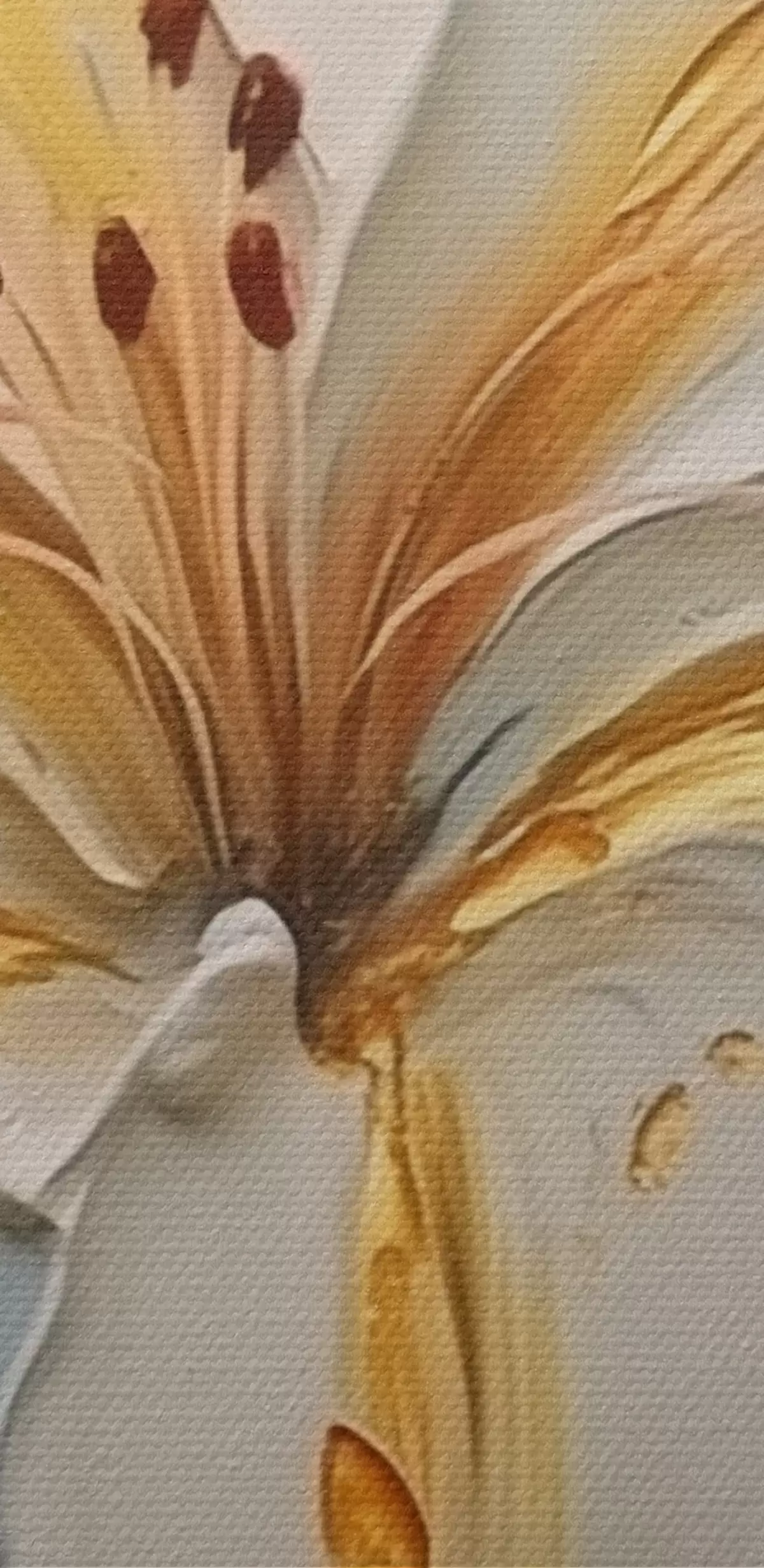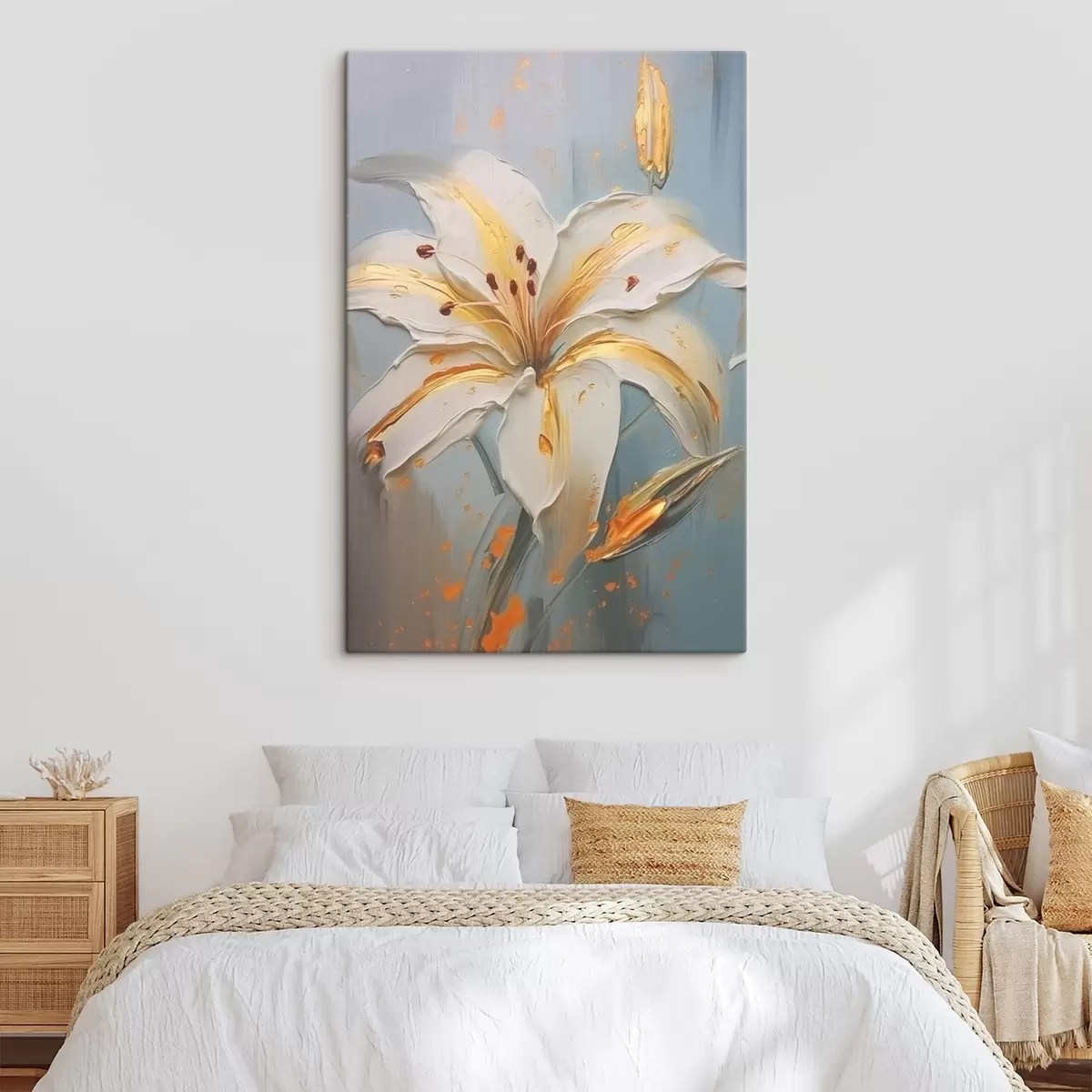 Glezna Balta lilija ar dzelteniem triepieniem uz zila fona s45077