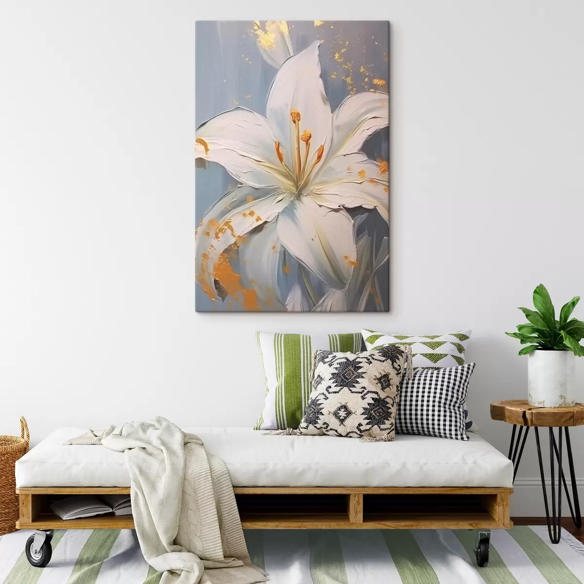 Glezna Balta lilija ar dzelteniem akcentiem uz zila fona s45078