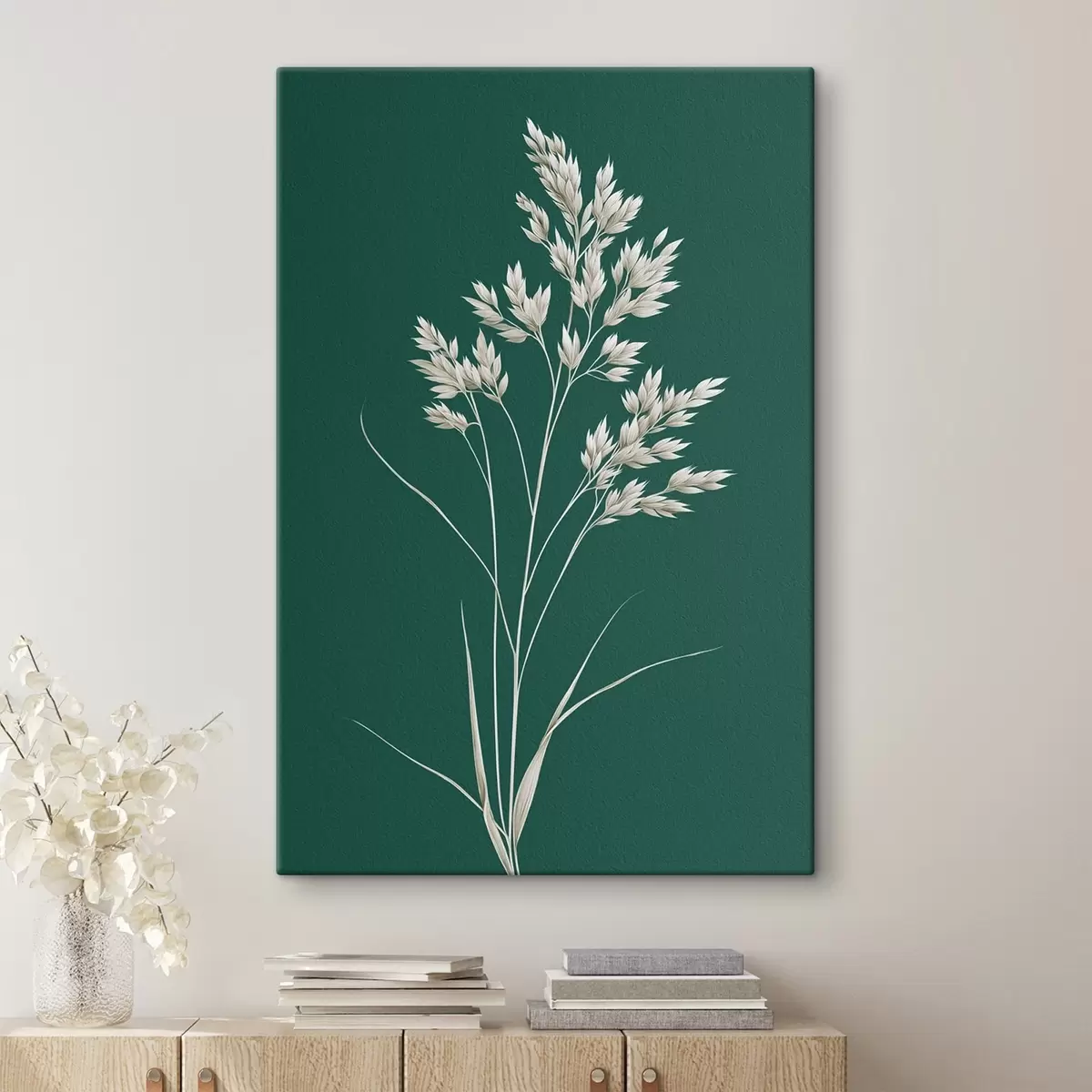 Glezna botānisks, minimāls, zāle, stublājs, zaļš fons, dabisks, augs, plakans Nr s45091