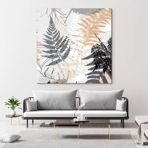 Glezna papardes, abstraktas lapas, raksts, plakans dizains, kontrasts, pelēki toņi, botānisks, pārklājums Nr s45101