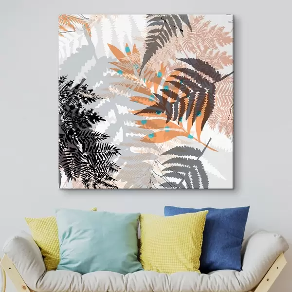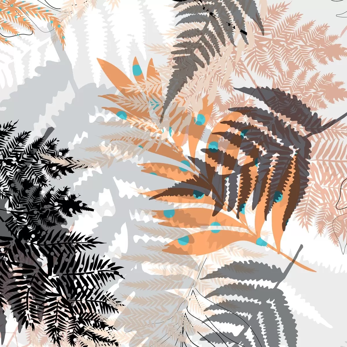 Glezna džungļu zaļumi, moderns stils, līnijmāksla, daudzslāņaini augi, izslēgtas krāsas, daba Nr s45102
