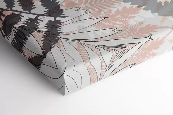 Glezna tropu lapas, grafikas, tekstūra, bēšs un melns, siluets, mūsdienu, augs Nr s45103