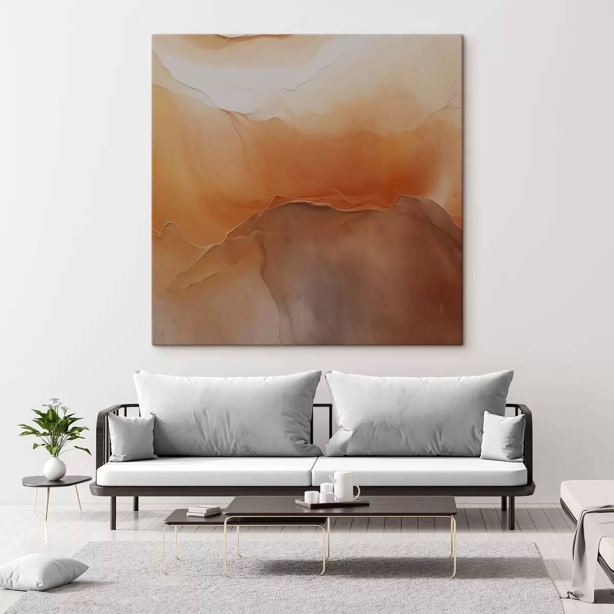 Glezna neitrāla abstrakcija, smilšu krāsas, maigas līknes, vizuālā tekstūra, plūsmas efekts s45108