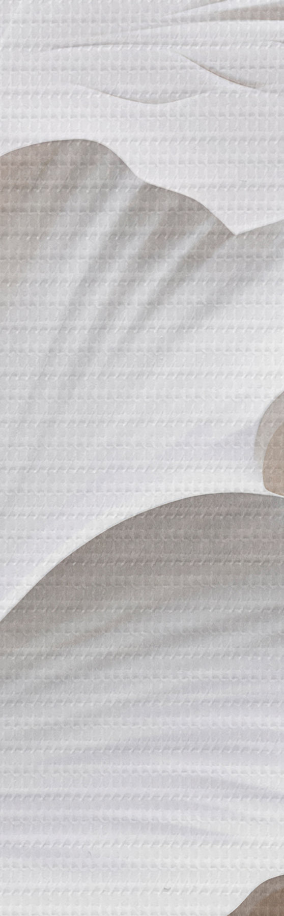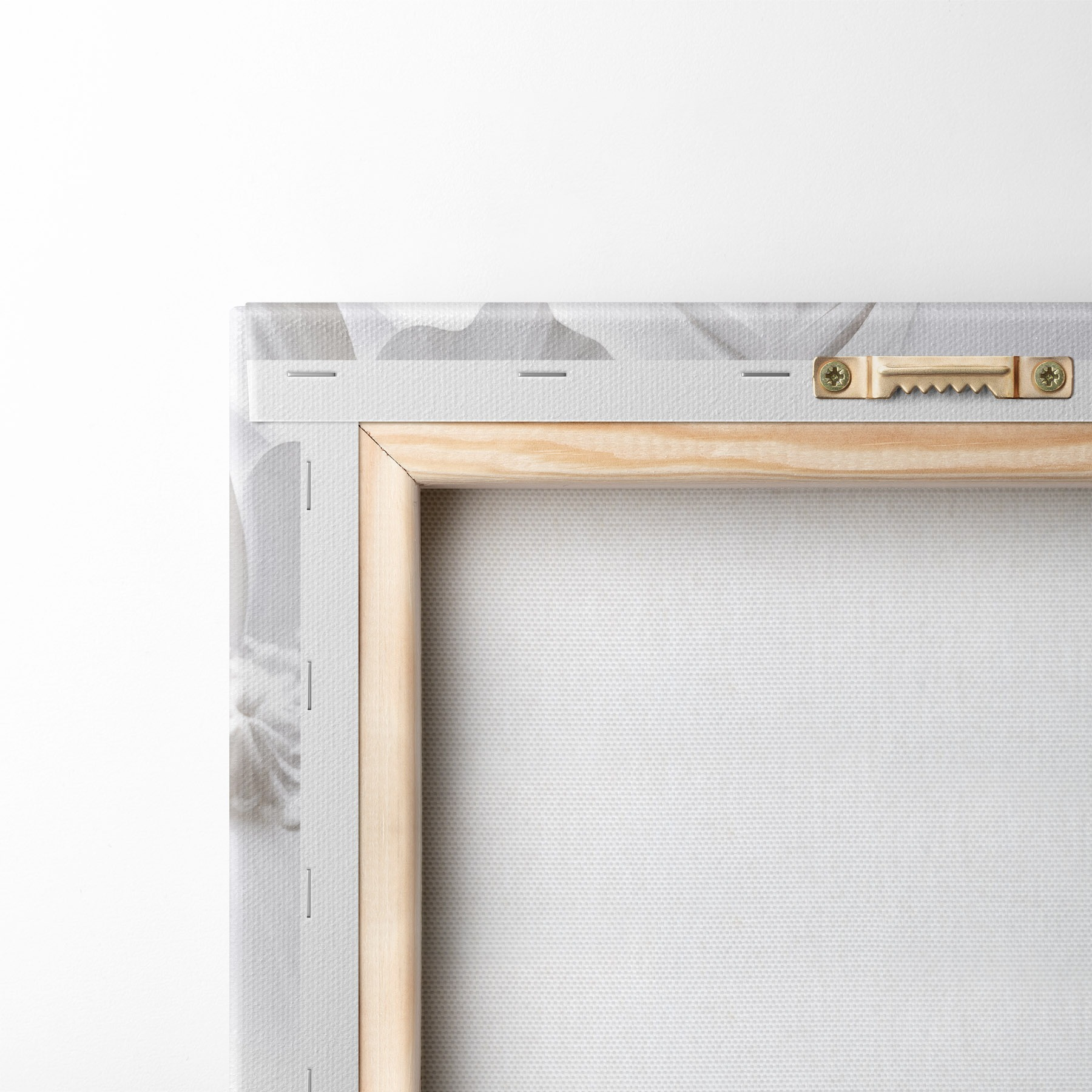 Glezna Dekoratīvi minimālisma stilā veidoti balti ziedi ar lapām, reljefa imitācija, balts fons s45180