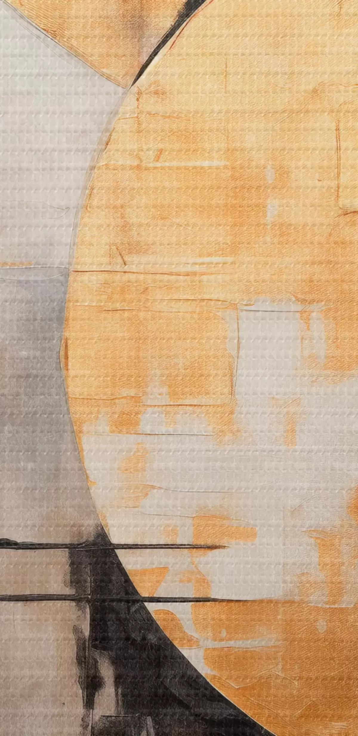 Glezna Abstrakta glezna ar apļiem, melnām un dzeltenām līnijām un fonu ar pelēkiem un baltiem toņiem Nr s45185
