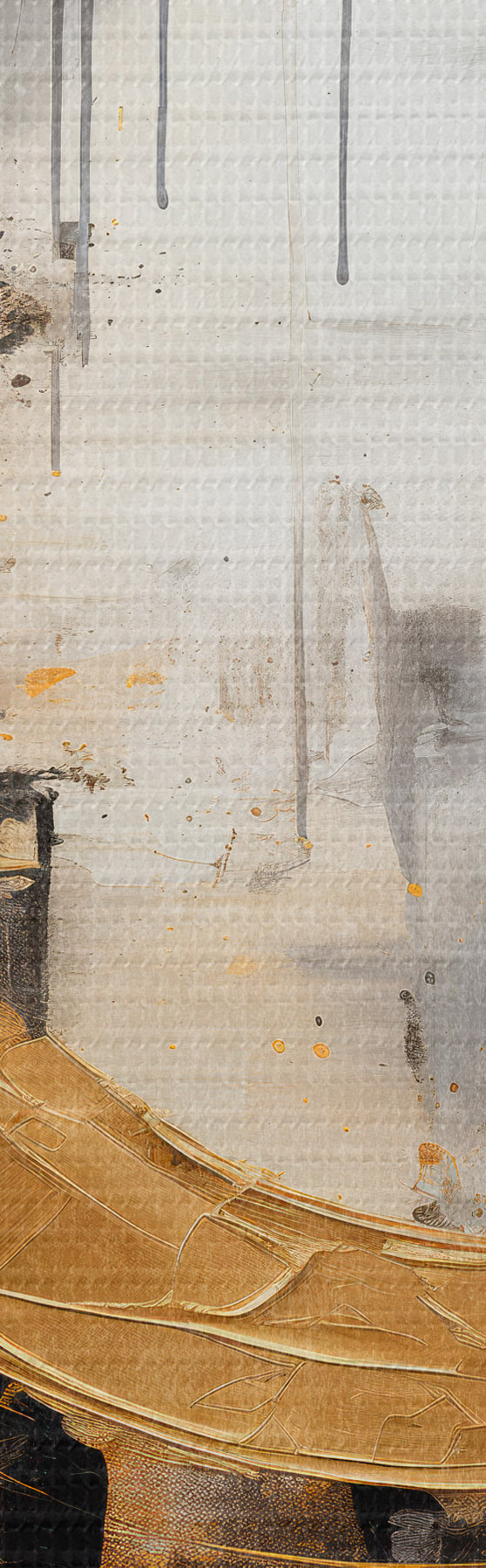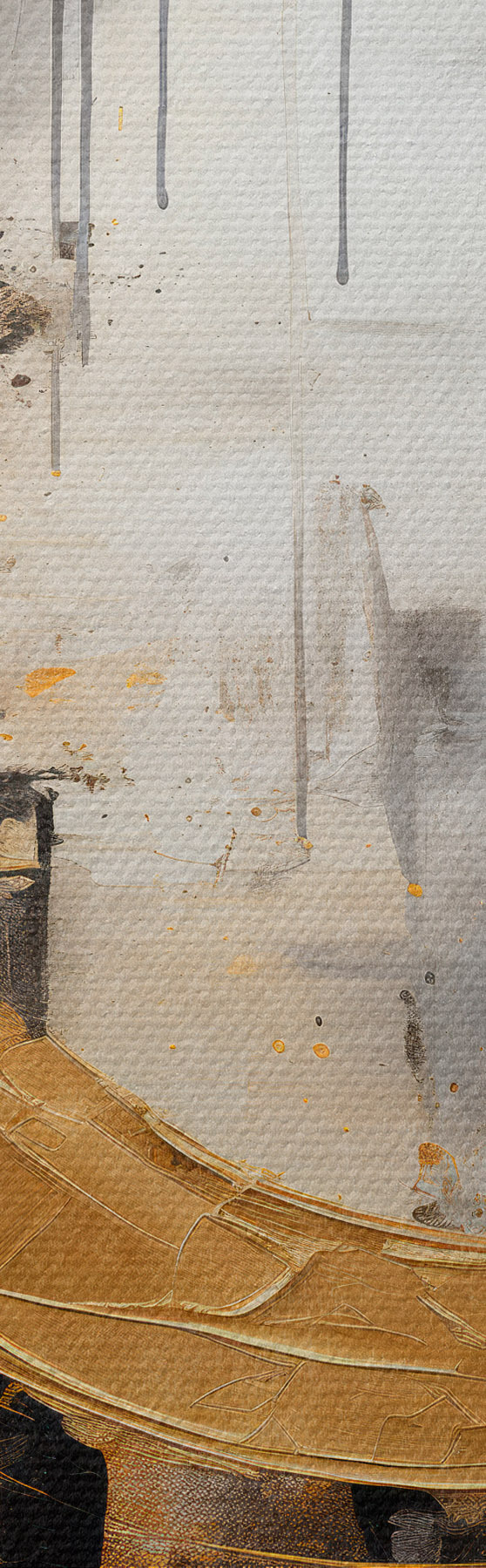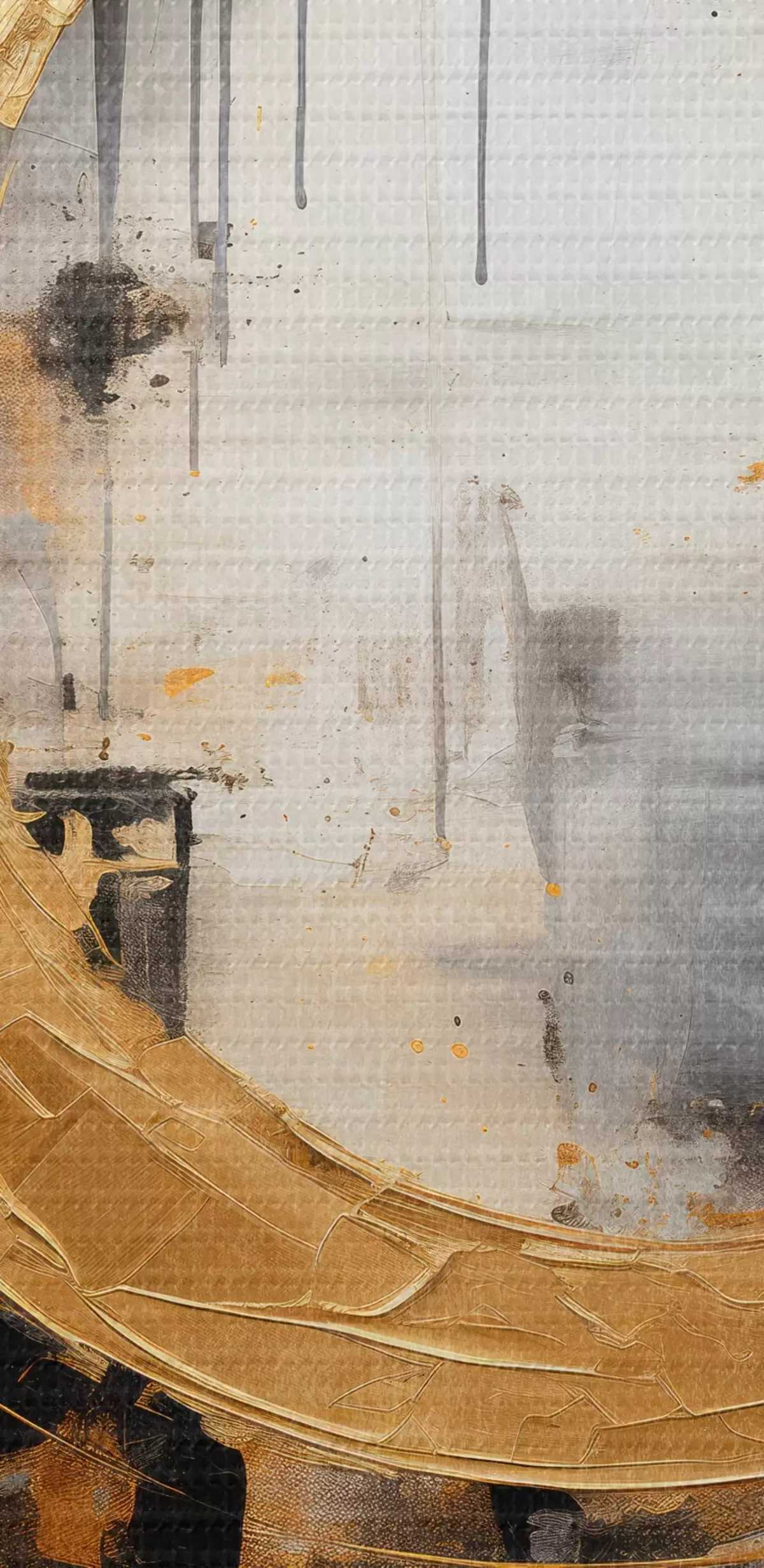 Glezna Abstrakta glezna ar apļiem, melnām un dzeltenām līnijām un fonu ar pelēkiem un baltiem toņiem Nr s45186