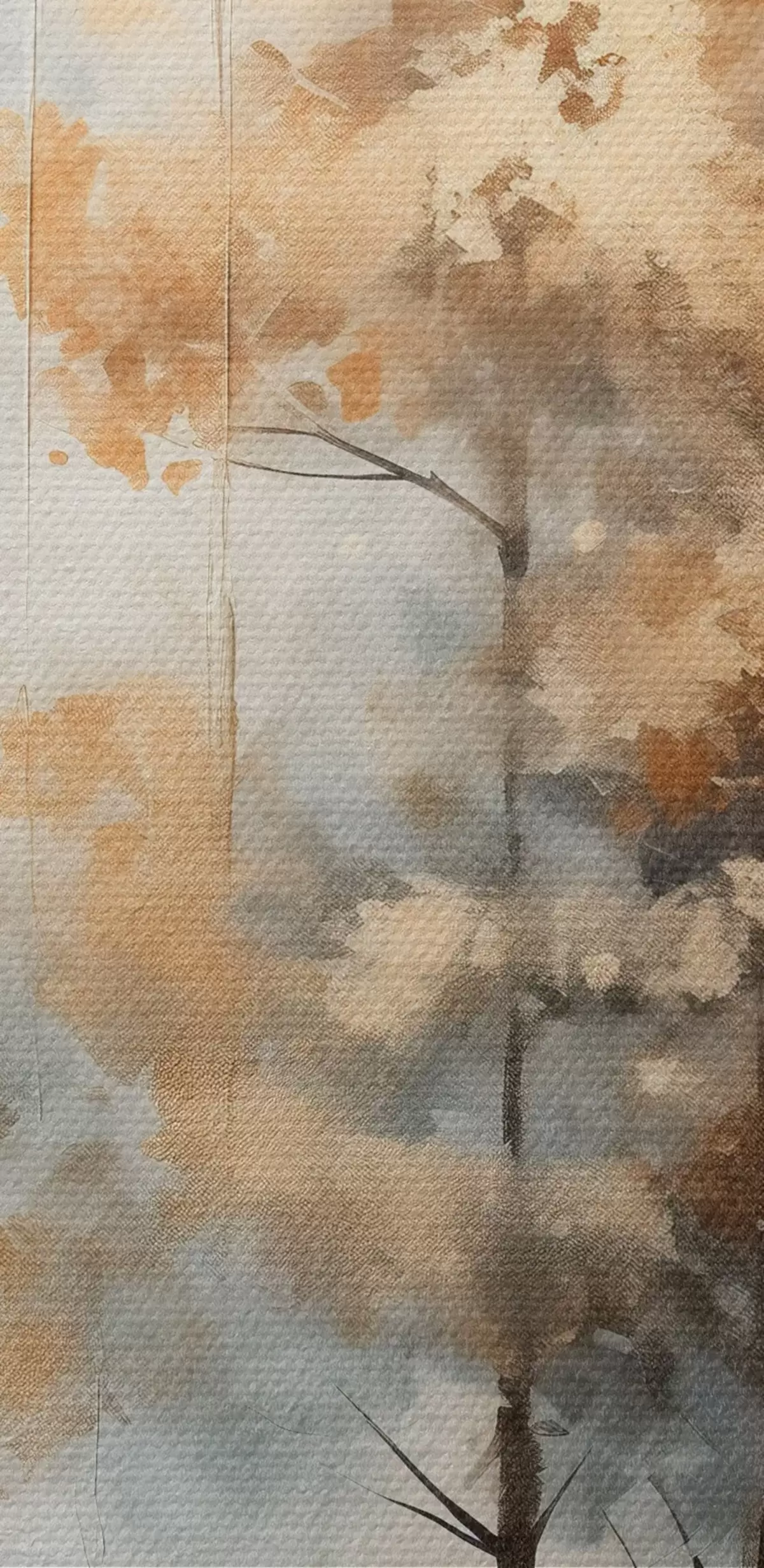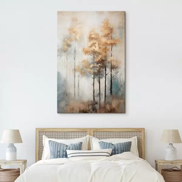 Glezna Teksturēti augsti koki ar dzeltenām lapām mežā , fons ir maigu zilu un brūnu toņu sajaukums Nr s45187
