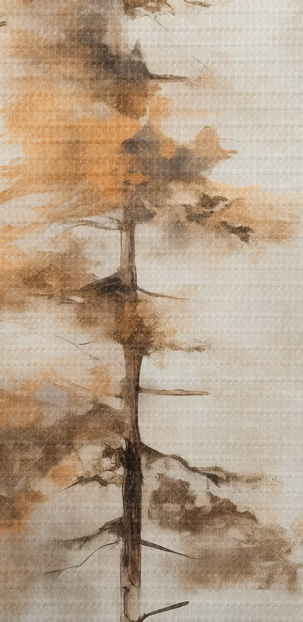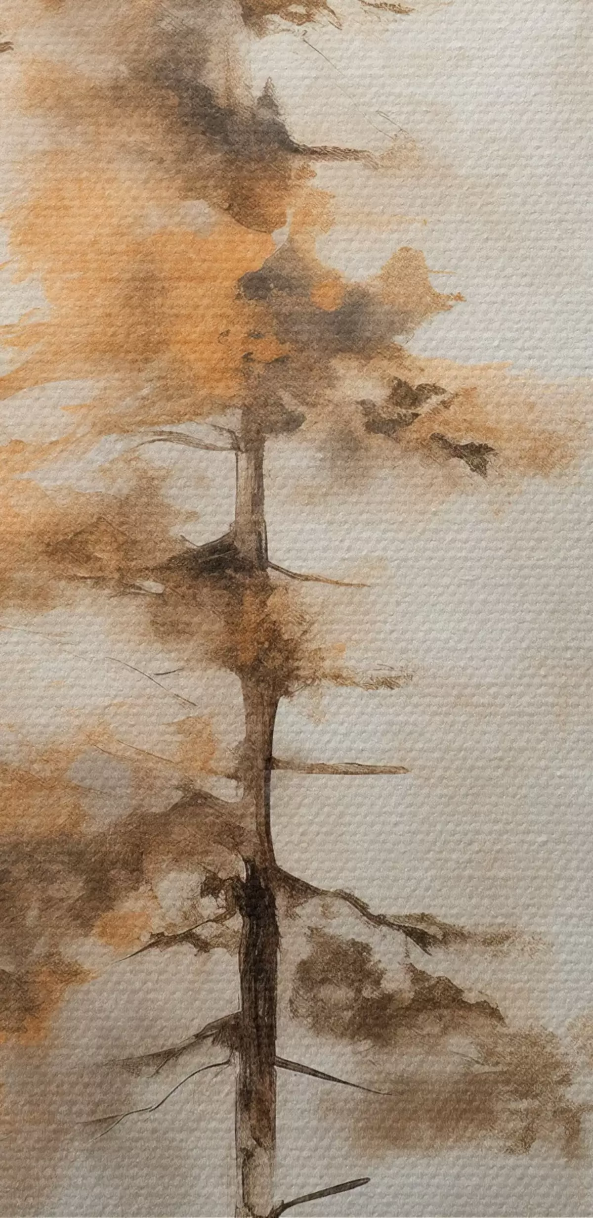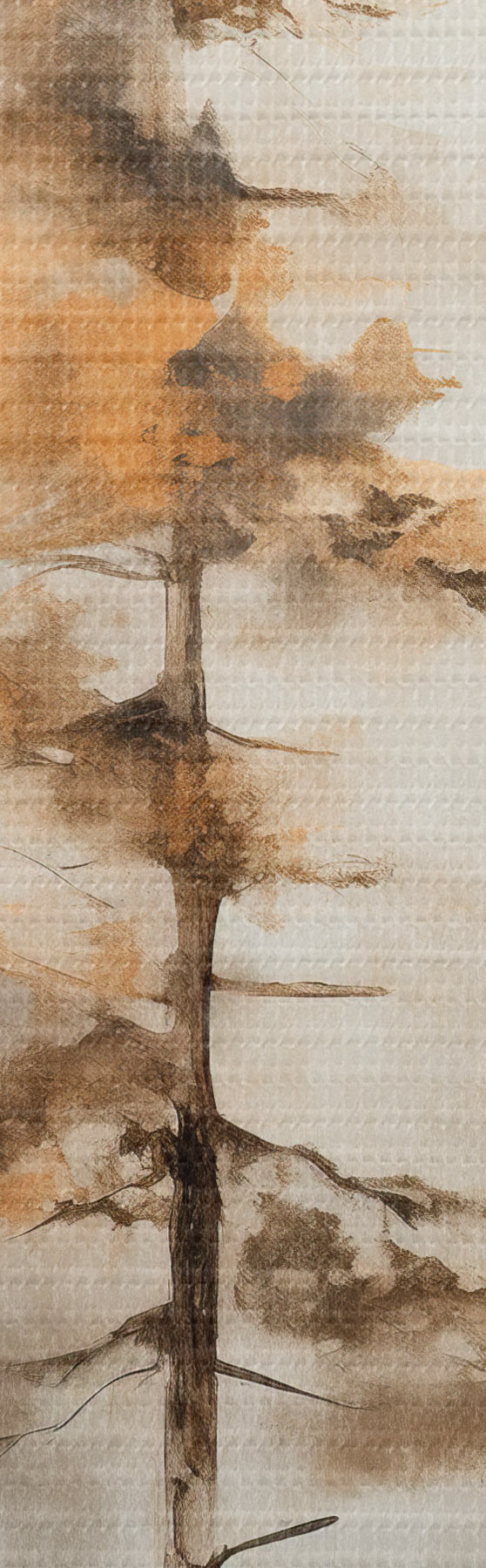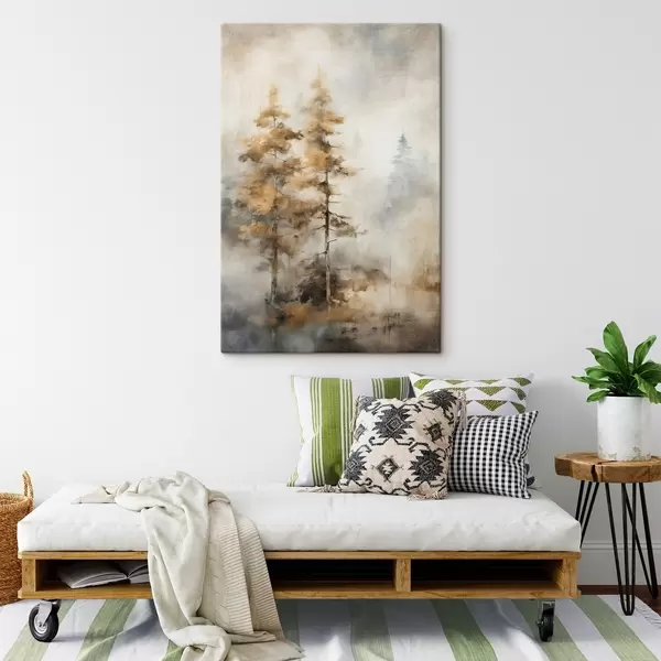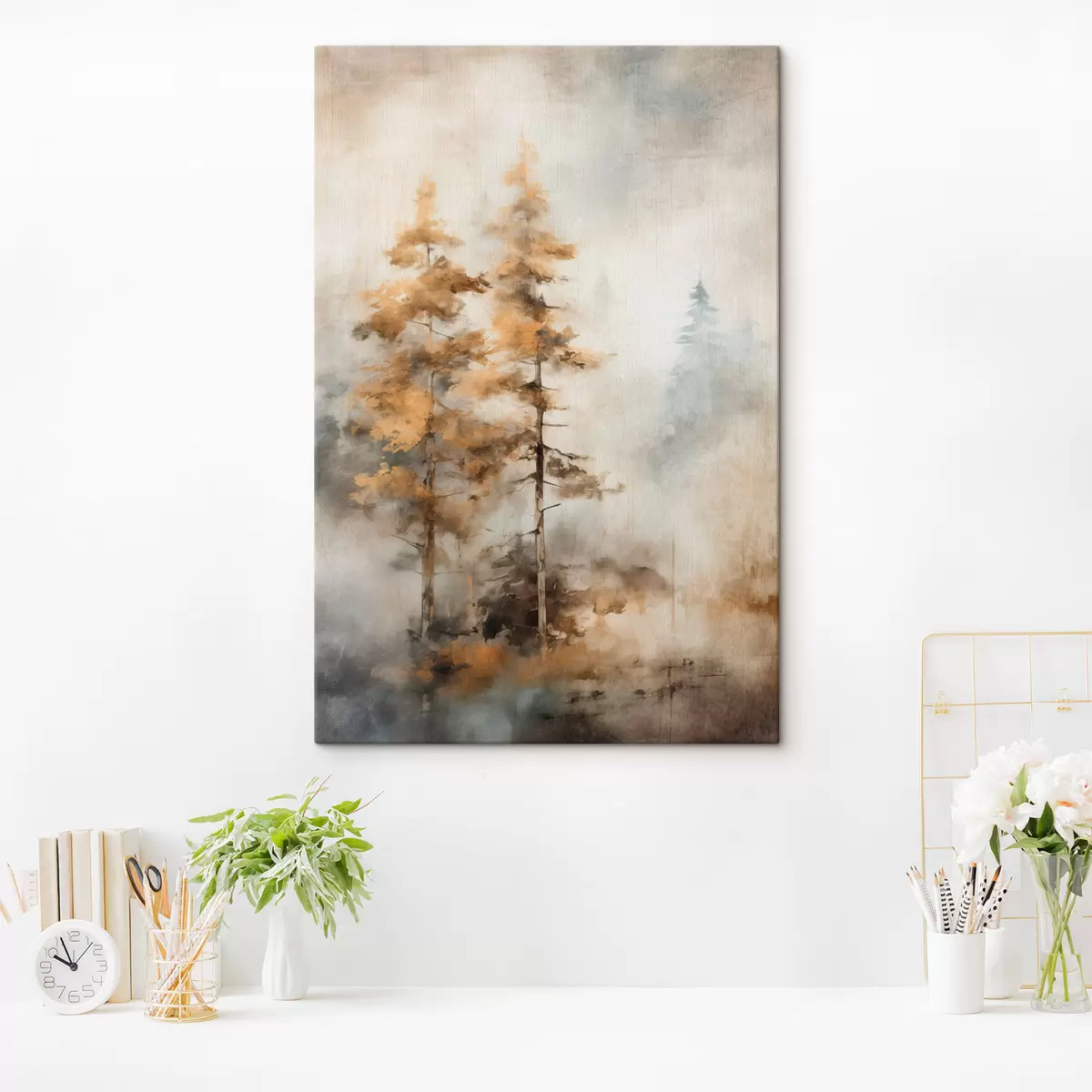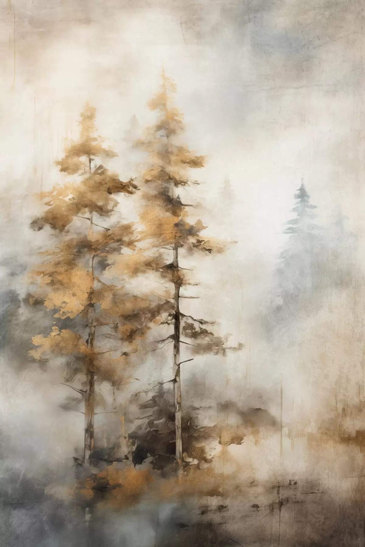 Glezna Teksturēti augsti koki ar dzeltenām lapām mežā , fons ir maigu zilu un brūnu toņu sajaukums Nr s45188