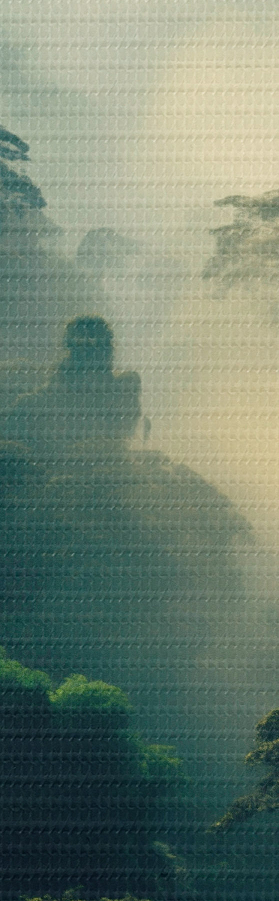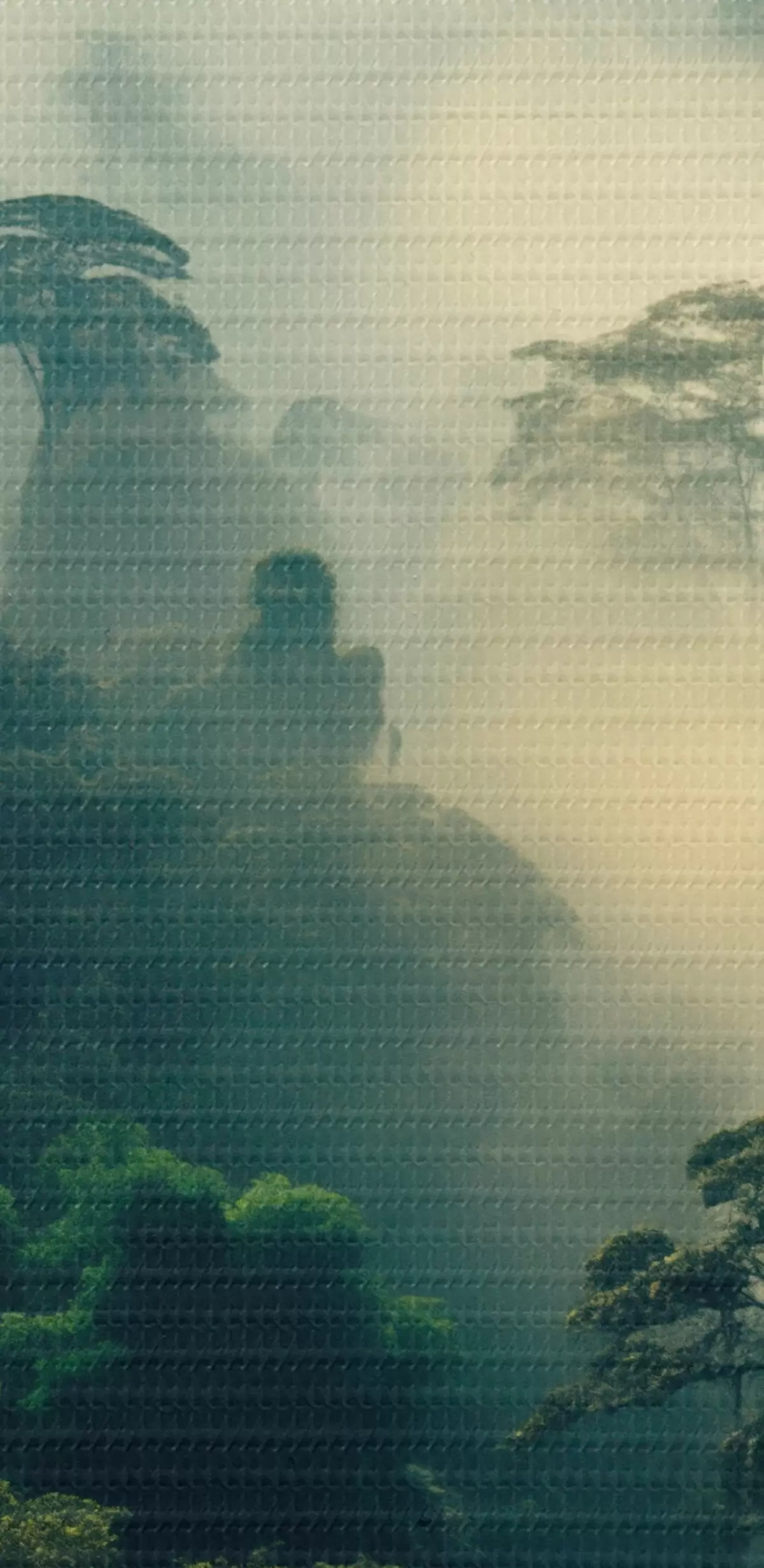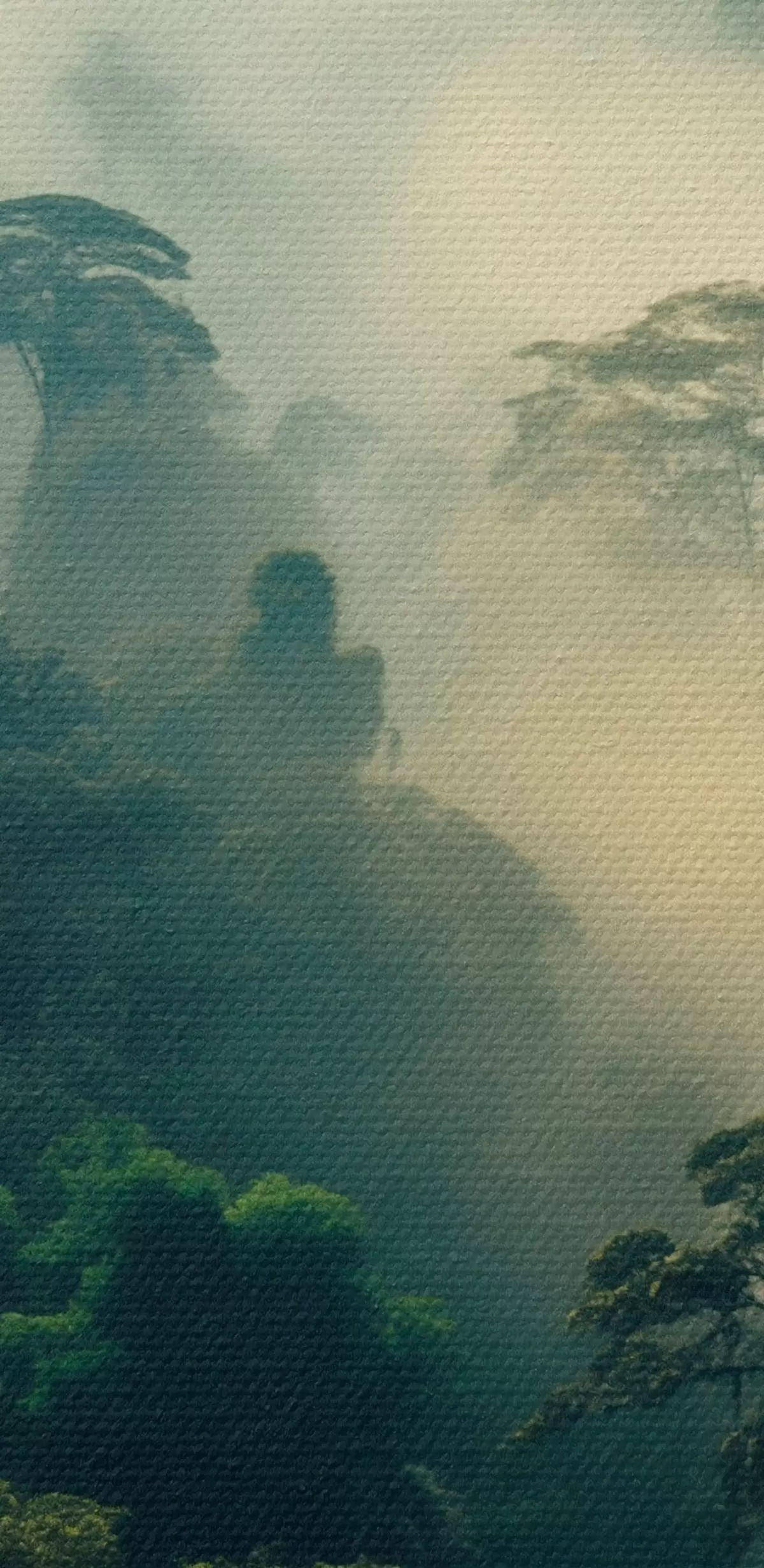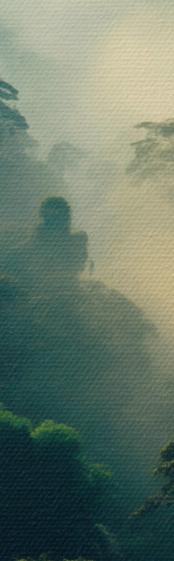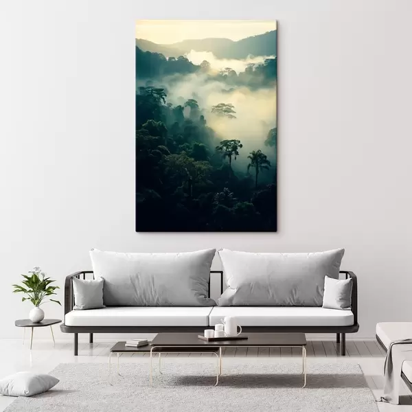 Glezna Tropu lietus mežs ar sulīgi zaļiem kokiem un biezu miglas slāni, kas rada atmosfērisku vidi Nr s45190