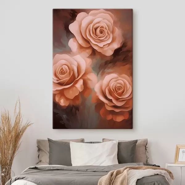 Glezna Trīs rozā rozes uz neskaidra fona Nr s45222