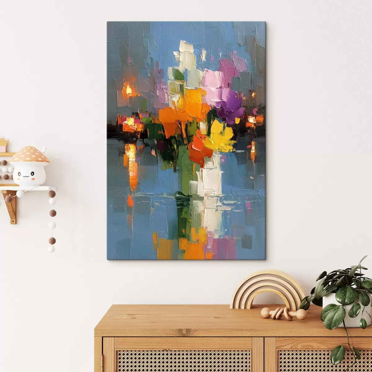 Glezna ir iekārtojama uzreiz pēc tās saņemšanas. Glezna tiks izstiepta uz 2 cm platām koka nestuvēm.