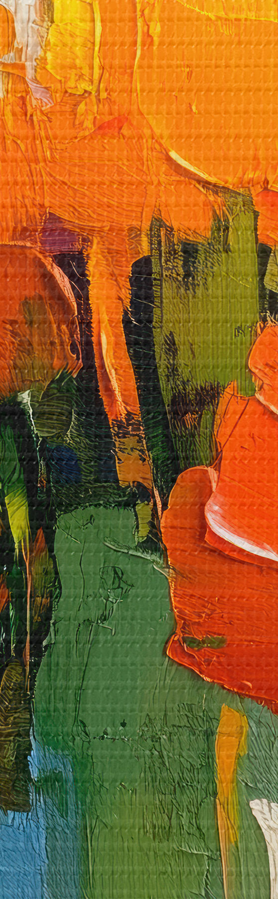 Smalkais diegu pinums uz šī audekla atgādina profesionālu mākslinieku audeklu virsmu.