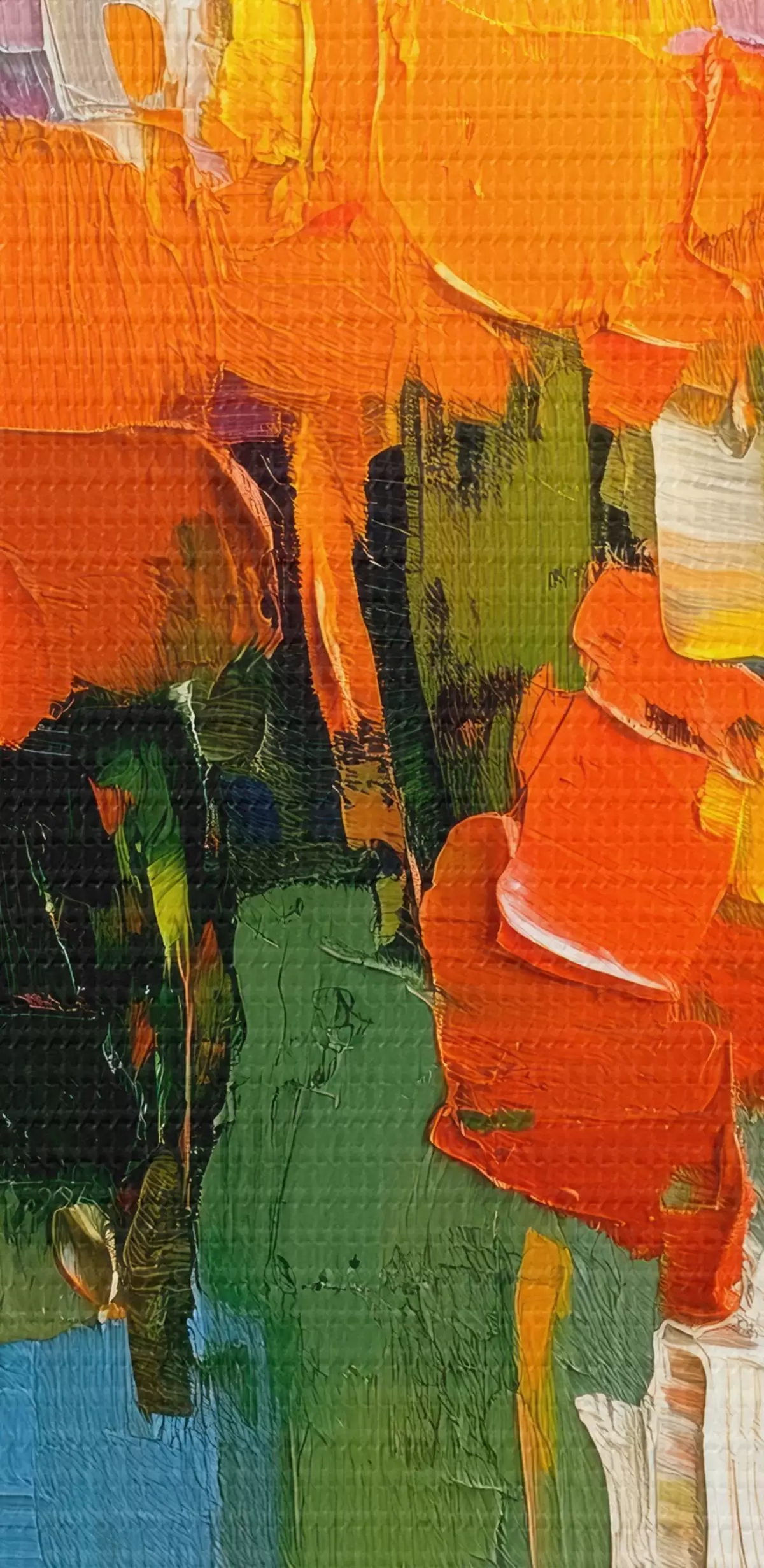 Smalkais diegu pinums uz šī audekla atgādina profesionālu mākslinieku audeklu virsmu.