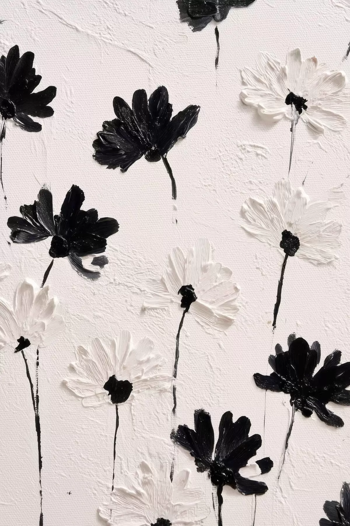 Glezna Volumetriski ziedi: impasto kompozīcija melnbaltos toņos s45247