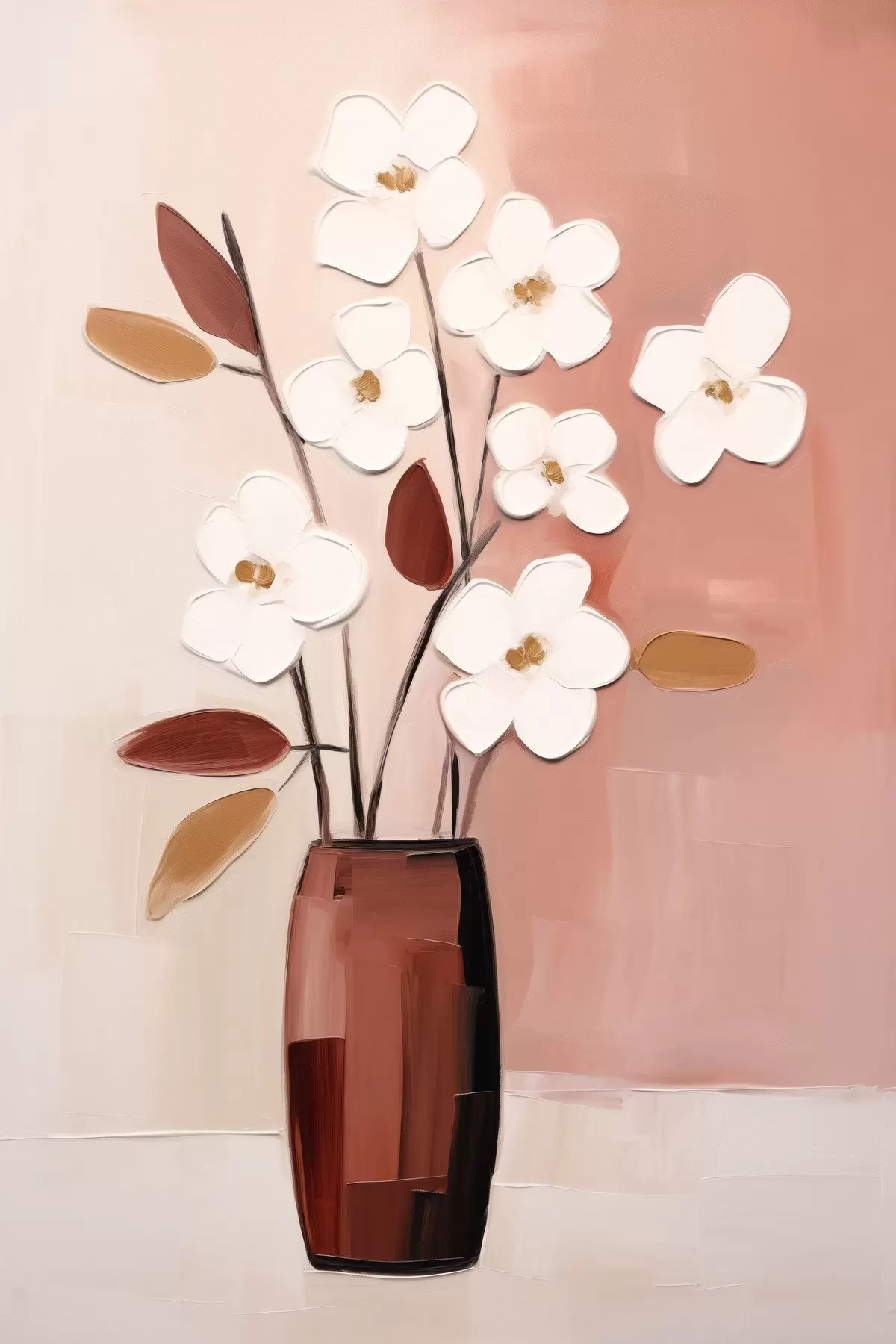 Glezna Balti ziedi tumšā vāzē: mūsdienīga ziedu glezniecība Nr s45255