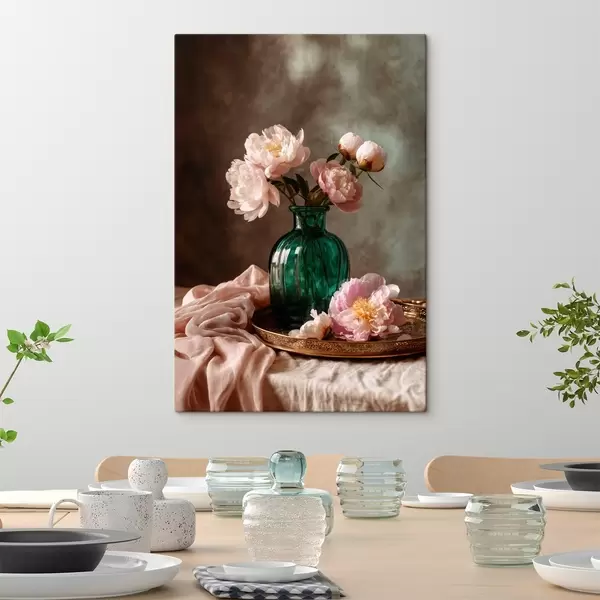 Glezna Maigi rozā peonijas smaragdzaļā vāzē Nr s45261