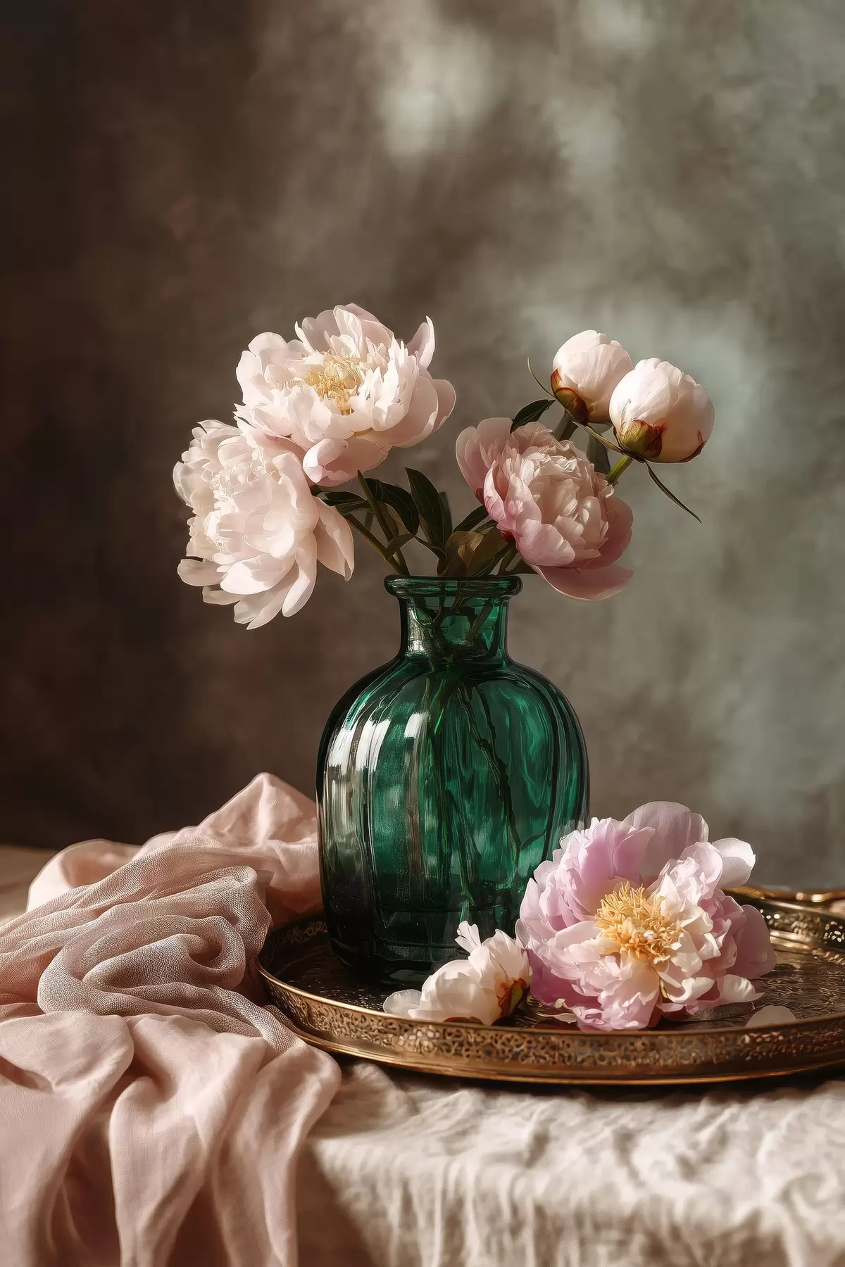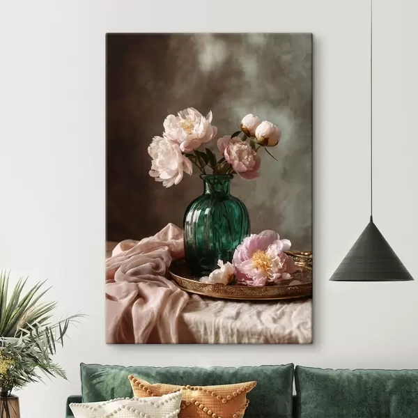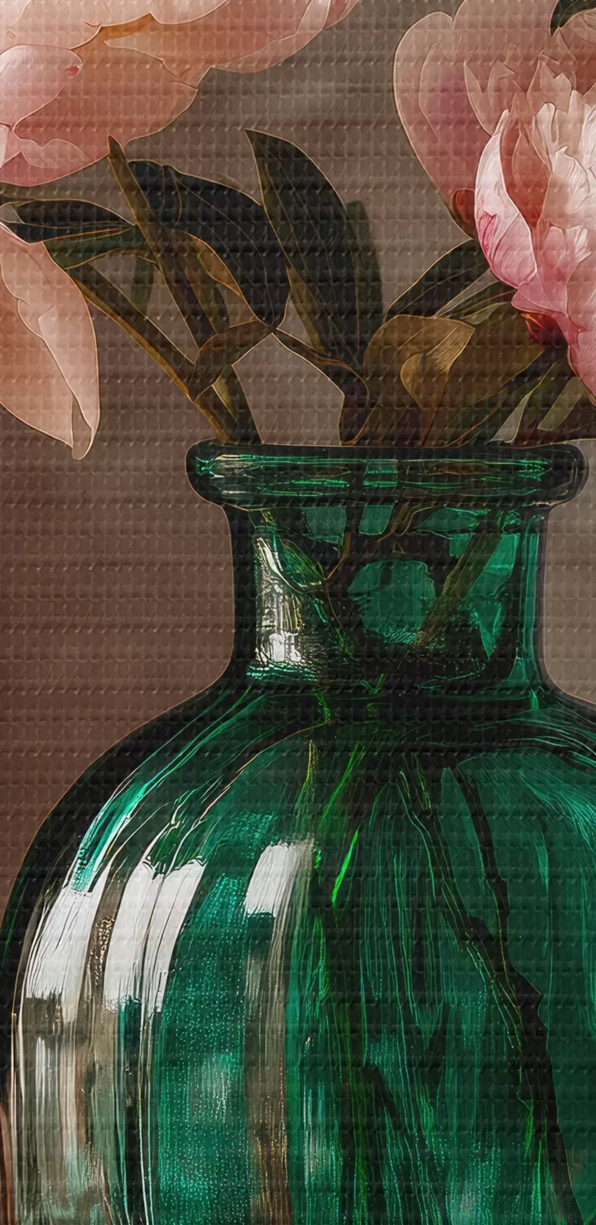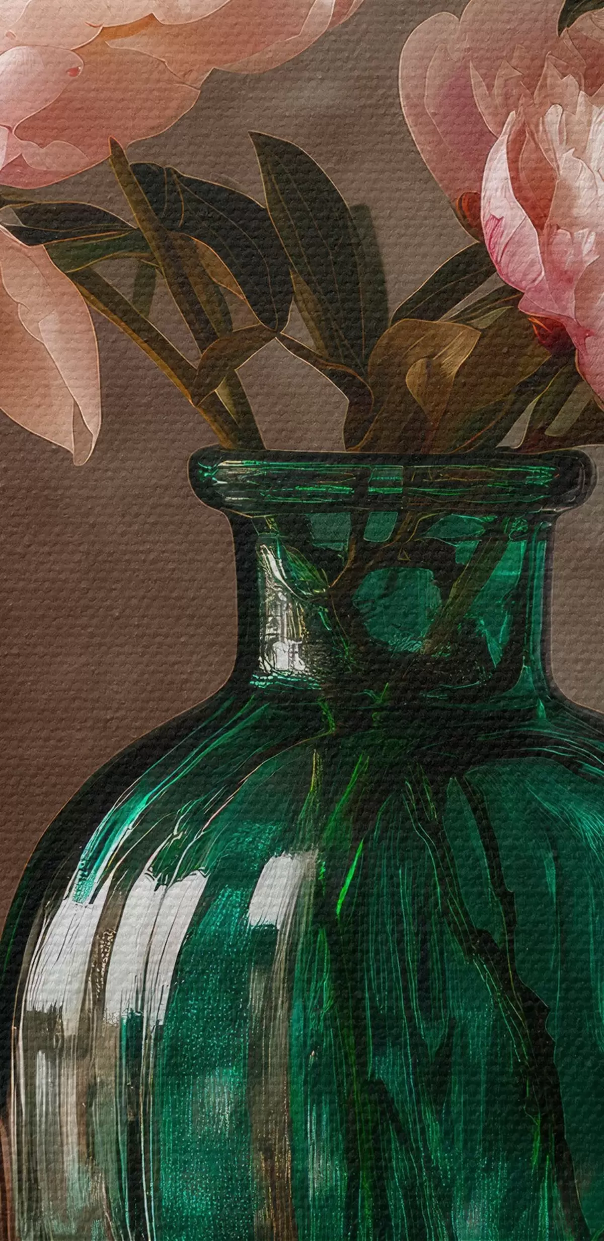 Glezna Maigi rozā peonijas smaragdzaļā vāzē Nr s45261