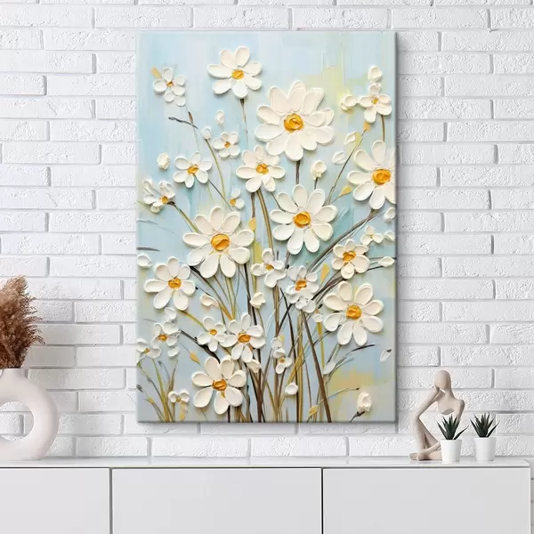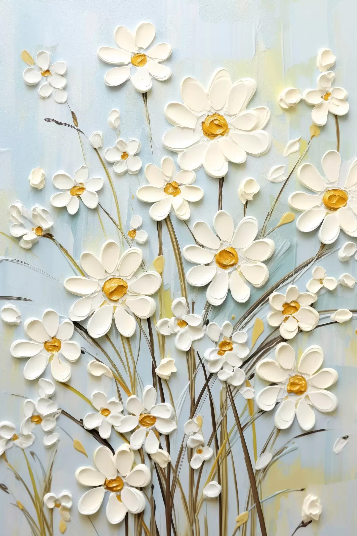 Glezna Fakturētas margrietiņas: impasto māksla ar izteiksmīgiem otas triepieniem Nr s45266