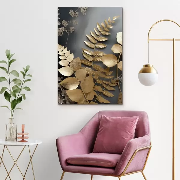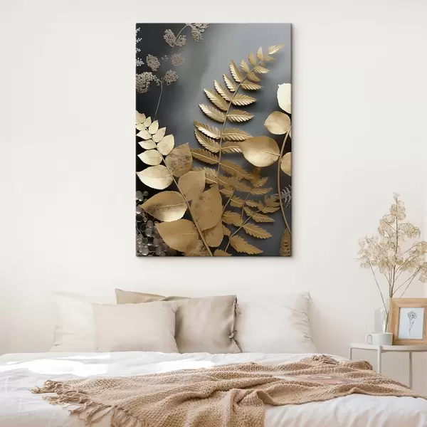 Glezna Eikalipta zari un tropu lapas uz tumša fona s45333