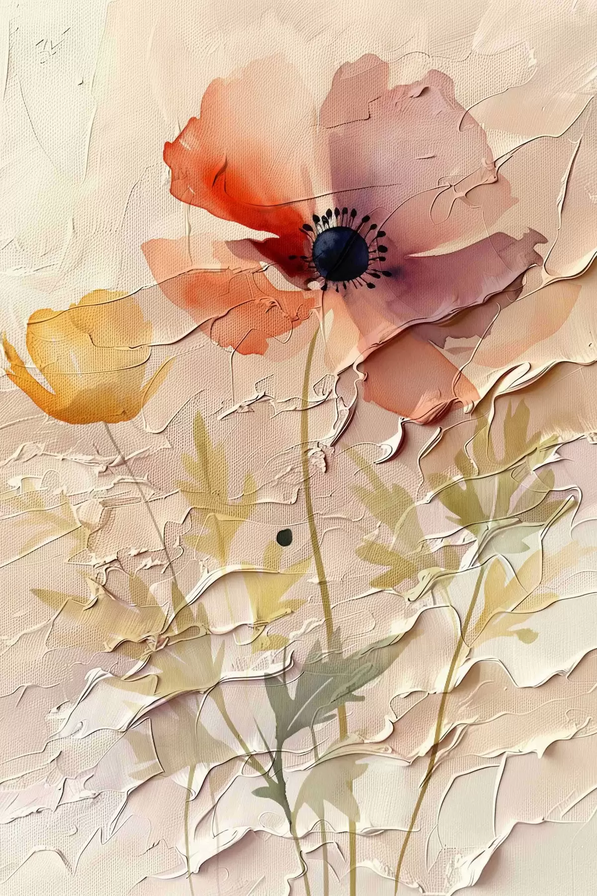 Glezna Caurspīdīgu ziedu kompozīcija uz gaiša fona Nr s45338