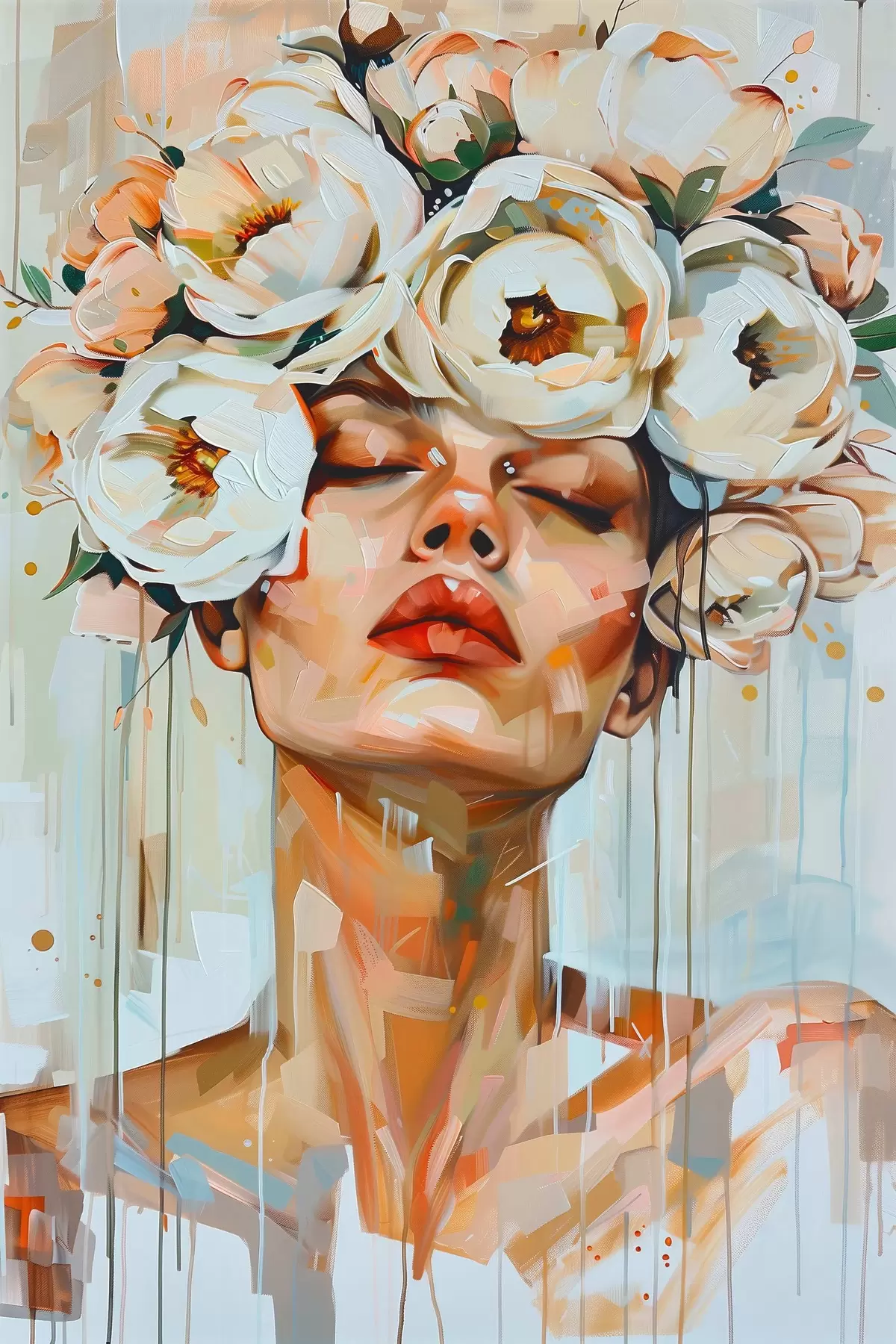 Glezna Sievietes portrets ar ziediem Nr s45370