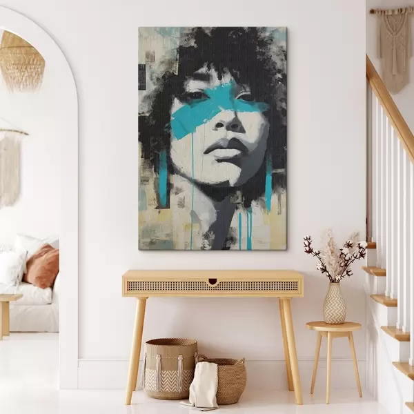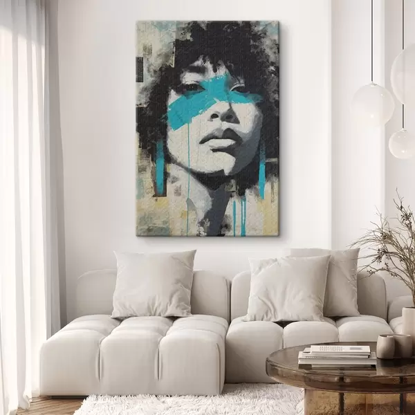 Glezna Jauktu mediju portrets ar krāsu triepienu un faktūru fragmentiem Nr s45417