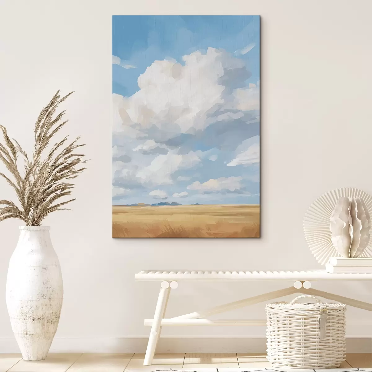 Glezna Kviešu lauks pret debesīm ar milzīgiem mākoņiem Nr s45454