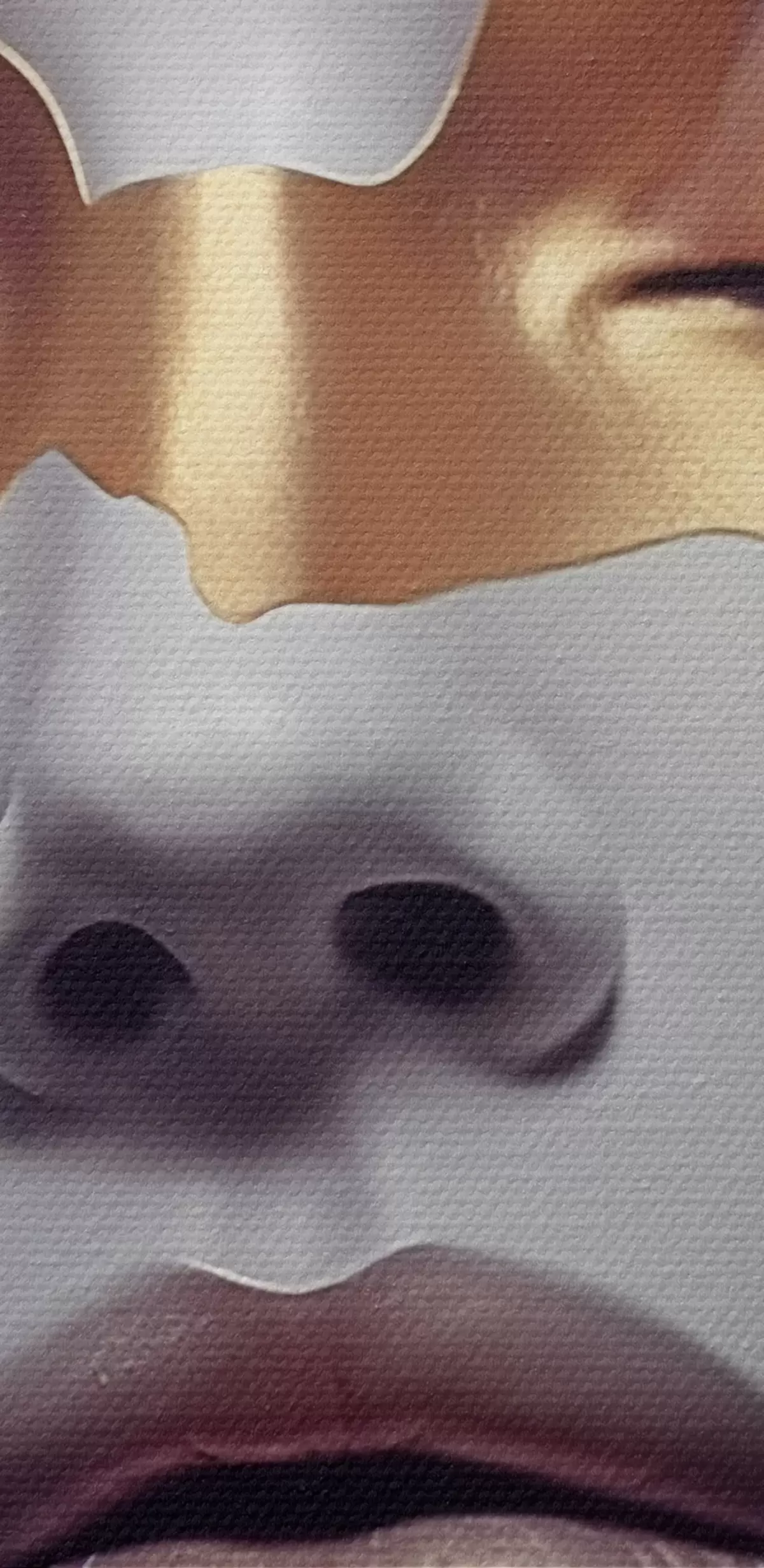 Smalkais diegu pinums uz šī audekla atgādina profesionālu mākslinieku audeklu virsmu.